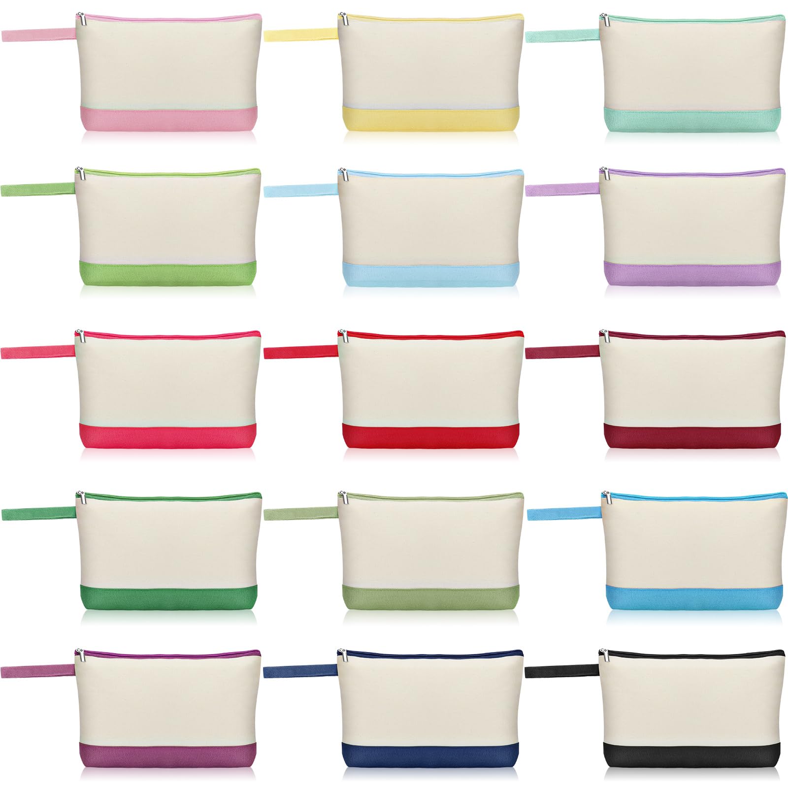 Silkfly 15 Pcs Cotton Canvas Makeup Bags Canvas Cosmetic Bag 10.2 x 5.5 x 2 Inches Two Tone Makeup Bags Bulk with Zipper Blank DIY Pouch with Bottom Travel Toiletry Pouch for Women, Classic, /