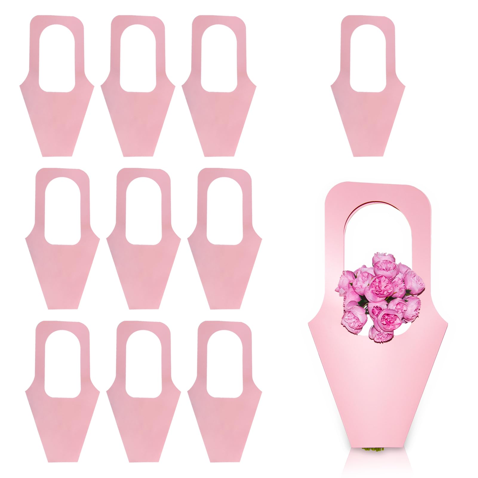 silllule 10 Pcs Pink Kraft Paper Flower Bouquet Wrapping Bags Bouquets Bags with Handle Floral Wrapping Paper for Bouquets Bags Flower Bag for Dating Wedding Valentine's Day Home Decoration