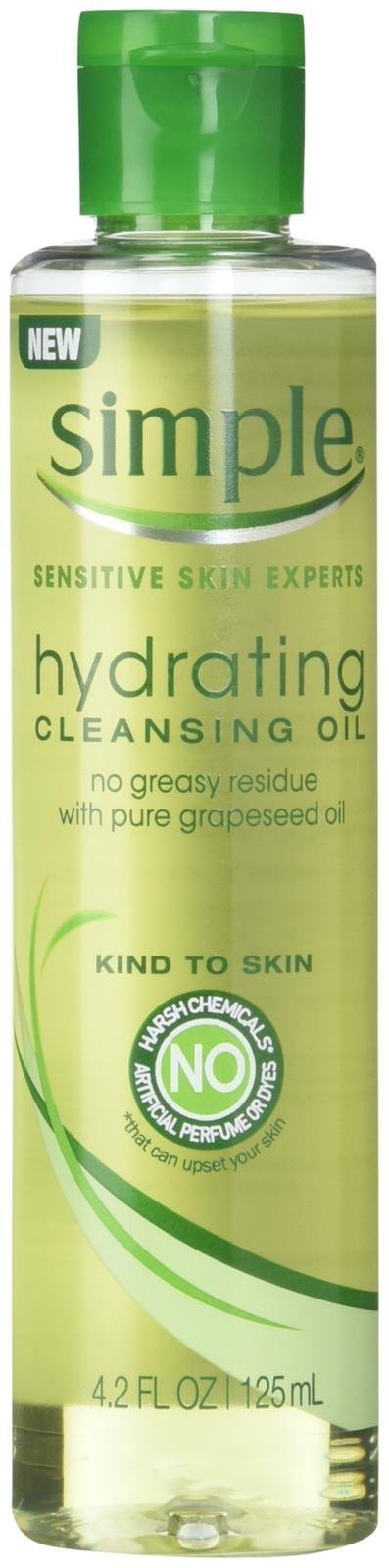New Simple Kind to Skin Hydrating Cleaning Oil - our finest cleanser for thoroughly clean and touchable soft skin. Made with 100% pure grape-seed oil, our new Simple Kind to Skin Hydrating Cleaning Oil is enriched with Vitamin A & E to dissolve impurities and remove makeup, leaving your skin deeply clean and well hydrated. Our Simple Kind to Skin Hydrating Cleaning Oil is a gentle, soothing and effective way to cleanse and lift away even waterproof makeup without stripping or irritating the skin. So, how does it work? Oil attracts oil, so when a few drops of the Simple Hydrating Cleansing Oil are massaged onto dry skin, the formula efficiently attracts grease, impurities and makeup and then cleverly rinses away once the oil is mixed with a little water. It won't leave your skin dry or greasy, just completely clean, soft and fresh, making it suitable for even oily skin Caring cleansing, unforgiving on make-up. A deep clean without greasy residue - for perfectly clean, nourished and smooth skin. And as all Simple products, Simple Kind to Skin Hydrating Cleaning Oil contains no dyes, no artificial perfumes, no alcohol and no harsh chemicals that can upset skin. It is also hypoallergenic, paraben-free, dermatologist tested and non-comedogenic, which is perfect for all skin types, even sensitive skin. For best results: Apply 2-3 drops to dry hands. Massage gently over your face working over the eyes and lips too. Add a little water to your skin to transform the oil into a milky-smooth texture, massage in and rinse.