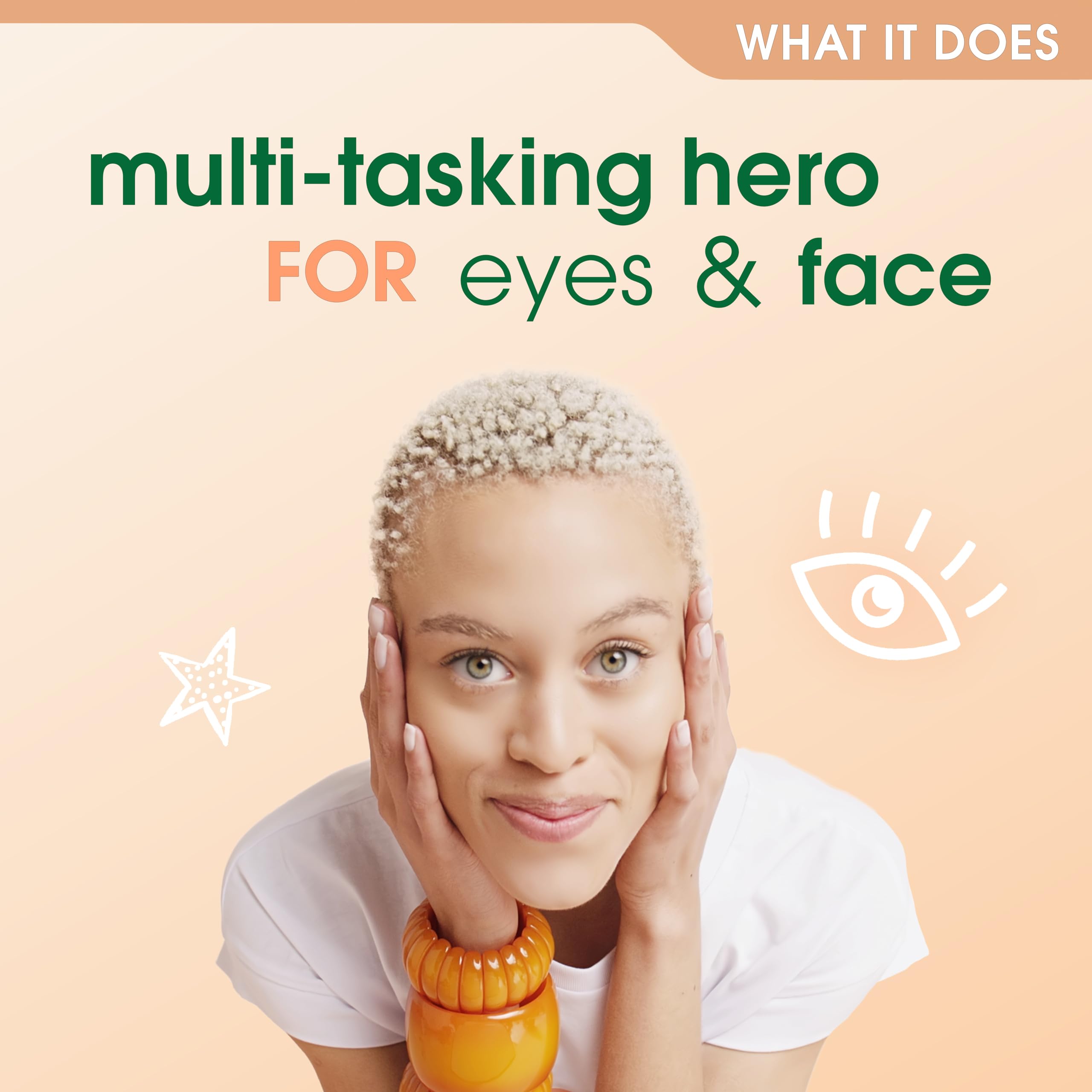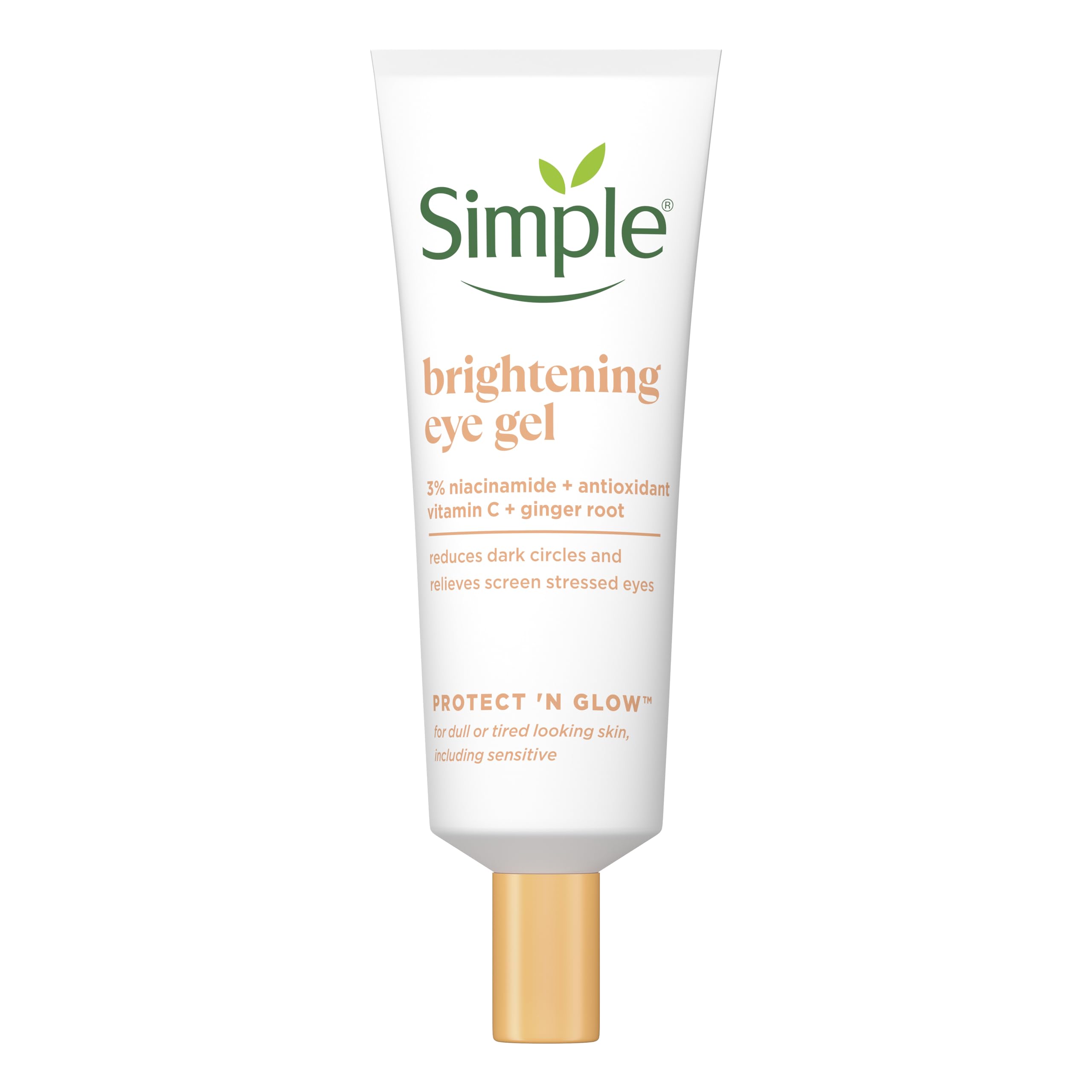 Boost the hydration levels of and brighten your eyes with Simple Protect 'n' Glow Brightening Eye Gel. Specially designed to give your hard-working, screen-stressed eyes the hydration and brightness they deserve. Its lightweight, fast-absorbing gel formula instantly helps to visibly reduce dark circles and provides antioxidant benefits. Our eye gel with a lightweight cooling gel texture is made with 5% hydrating actives, 3% antioxidants, vitamins B3+C+E, ginger, and minerals - the perfect combination of skin-loving ingredients, minerals and plant extracts that are gentle and kind to skin, making it perfect for all skin types, even for sensitive skin. It has been dermatologically and ophthalmologically tested so you can use it worry-free. Our eye gel contains no skin-harmful ingredients like artificial perfumes, colours, alcohol, mineral oils or harsh chemicals that could lead to skin irritation. It is vegan and certified cruelty-free by PETA - we don’t test on animals anywhere in the world. How to use it? There are three ways for you to relieve, protect and brighten your screen-stressed eyes. You can use our eye gel 1) as a brightening gel in the morning 2) as a hydrating primer before applying make-up 3) throughout the day as a soothing treatment for tired eyes (our tip: try applying a bit directly on the eyelids). Use our eye gel as part of your typical skincare routine and it could become your favourite daily eye moisturiser.IngredientsIngredients: Aqua, Propanediol, Niacinamide, Glycerin, Tetrahydroxypropyl Ethylenediamine, Caprylyl Glycol, Phenoxyethanol, Carbomer, Saccharide Isomerate, Citric Acid, Hydrolyzed Lupine Protein, Disodium EDTA, Medicago Sativa Seed Extract, Tocopheryl Acetate, Sodium Ascorbyl Phosphate, Sodium Citrate, Ethylhexylglycerin, Zingiber Officinale Root JuiceSafety WarningWarning:for external use only. Avoid getting into your eyes.