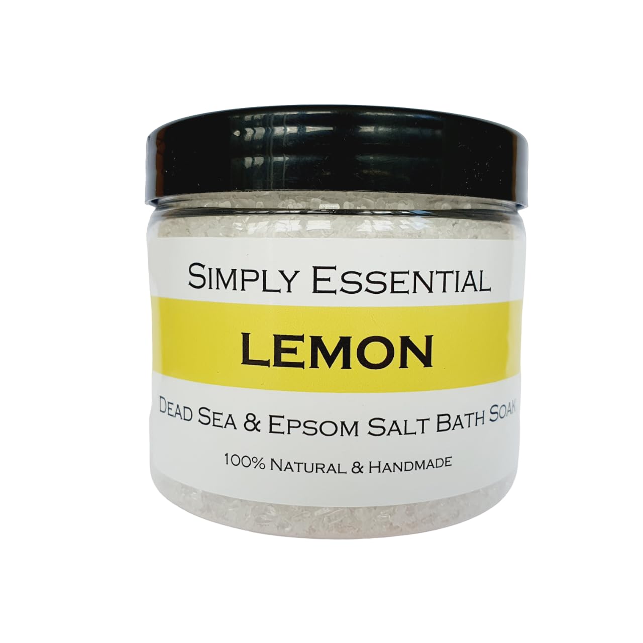 LEMON DEAD SEA & EPSOM BATH SALTS 225g The magnesium in Epsom salts and Dead Sea salts can help to relieve muscle tension and pain. The refreshing fragrance from the Lemon essential is a great pick me up and the scent of lemon essential oil can help to improve mood and boost energy levels and lift your spirits. Lemon is also a natural antibacterial and astrigent so ideal for oily skin and any skin conditions To use simply add a few tablespoons to a warm bath and soak for 20-30 minutes. The heat will help to open up the pores and allow the minerals to penetrate the skin. You can also use Lemon bath salts as a foot soak. Soak your feet in a bowl of warm water for 15-20 minutes for relief from tired, aching feet. CAUTIONS: If you have sensitive skin, start with a small amount of bath salts and see how your skin reacts. If you have any cuts or open wound