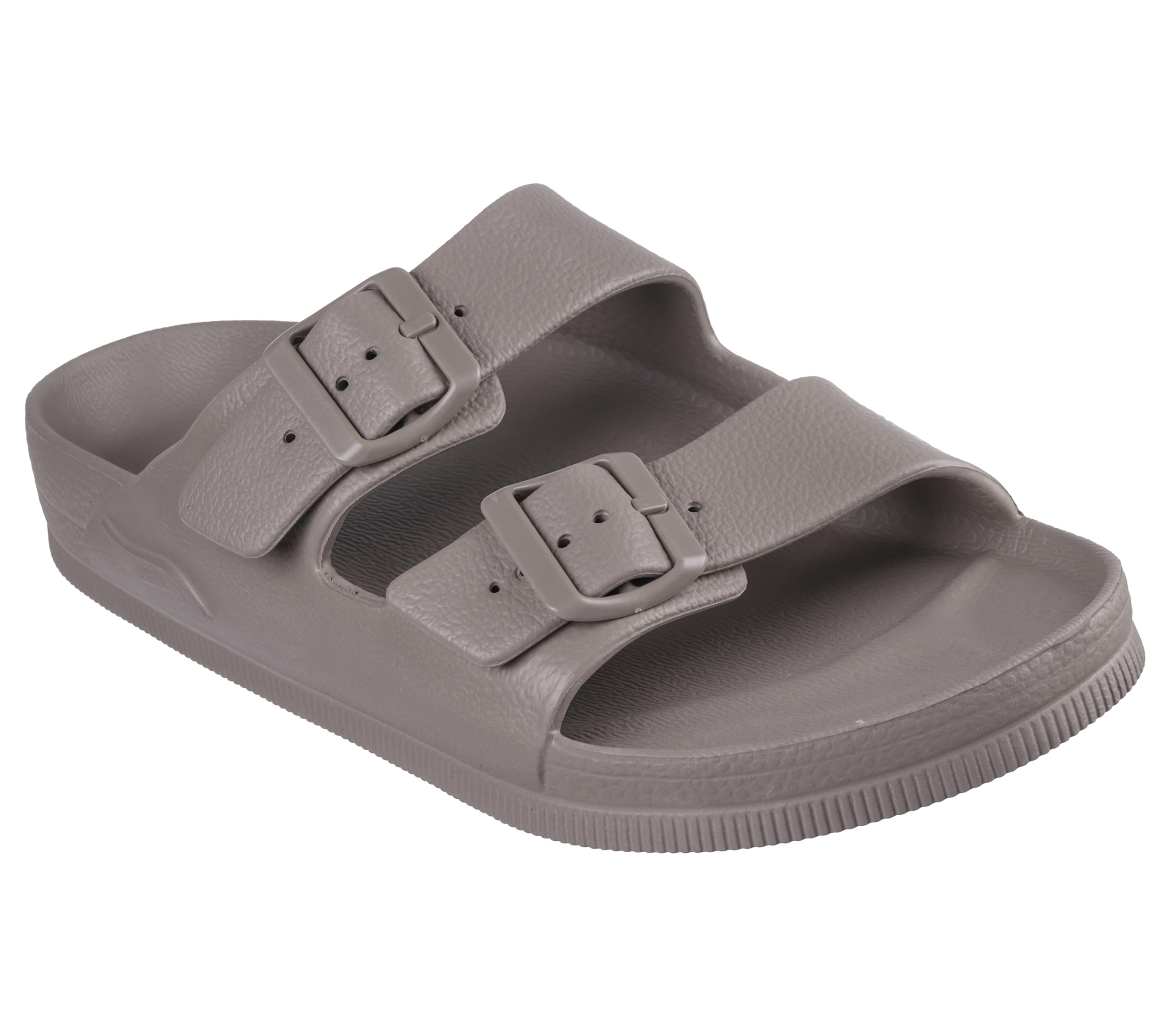 SKECHERS Men's Double Buckle Slide Sandal, Taupe, 9