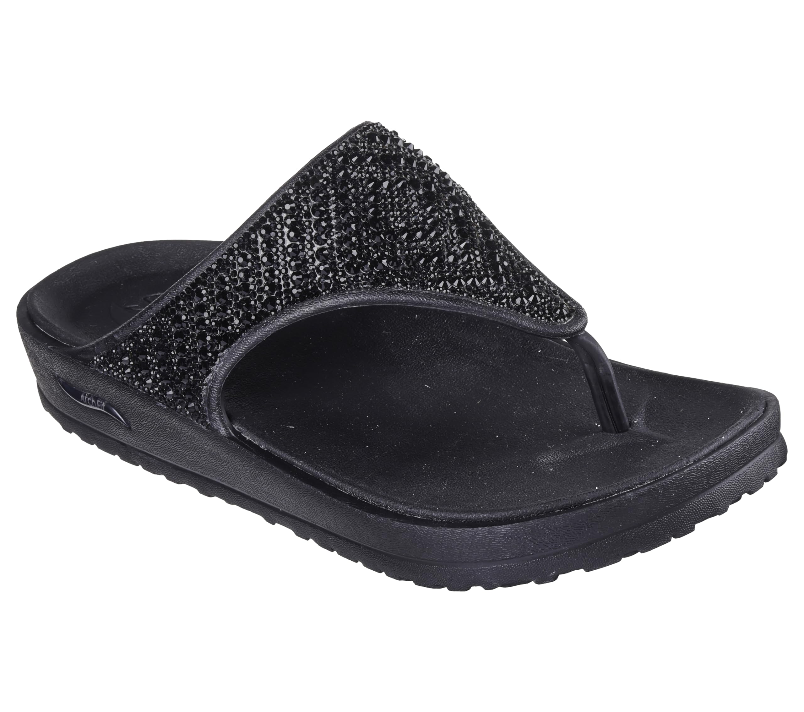Summery style combines with long-lasting comfort in Skechers Foamies: Arch Fit Cali Breeze - Shine On. This Arch Fit designed hooded thong sandal features a sculpted lightweight EVA upper with rhinestone embellishments and a Luxe Foam contoured cushioned footbed. Water-friendly. Spot clean.