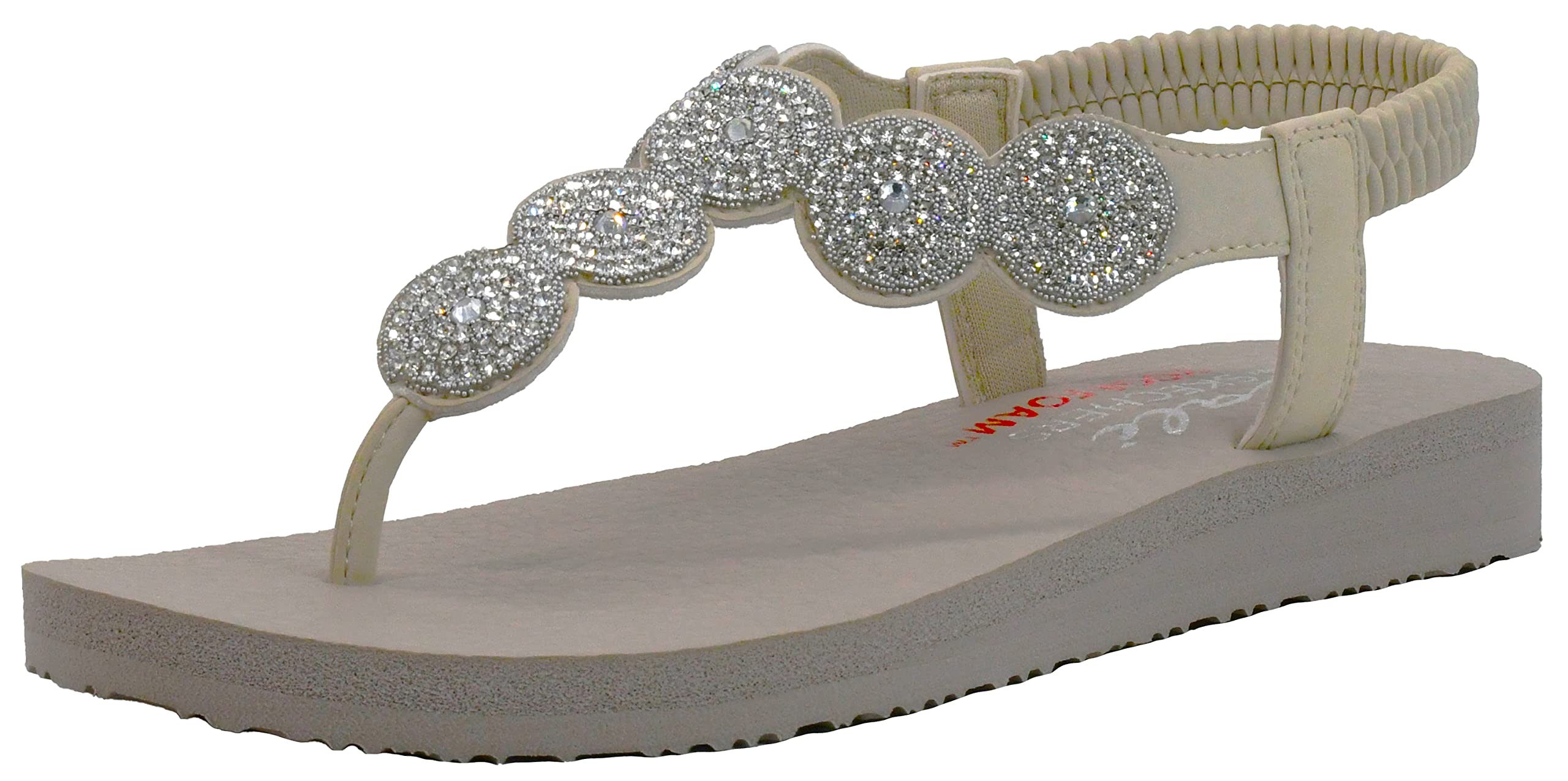 Skechers Women's Meditation Stars & Sparkle Circular Rhinestone Slingback Thong Nude Flip-Flop 6 M US