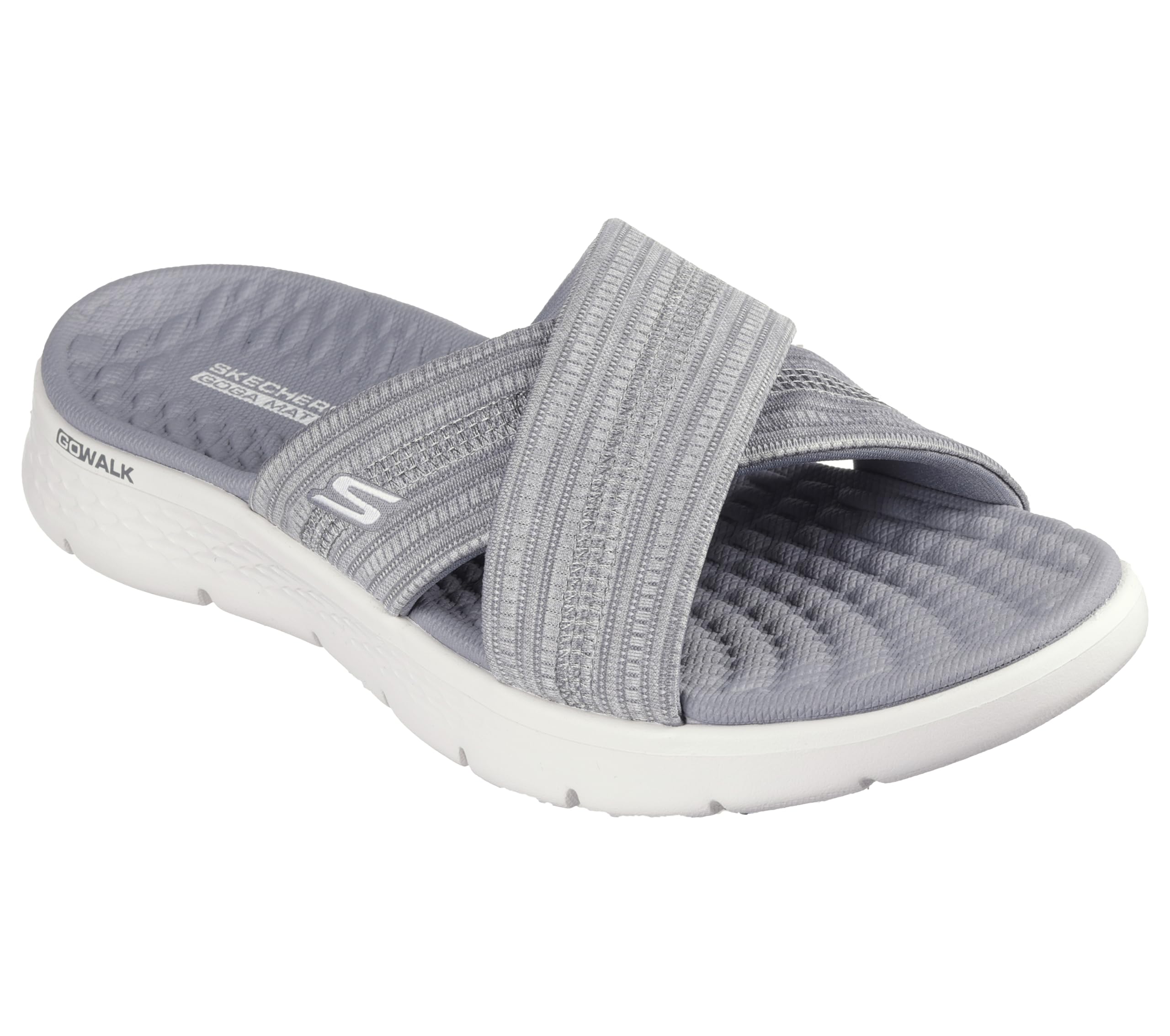 DescriptionFeel the summer breeze wearing Skechers GO WALK FLEX Sandal - Impressed. This cross-strap slide sandal features a soft memory foam straps with a contoured Goga Mat footbed and lightweight ULTRA GO cushioning. Machine washable.