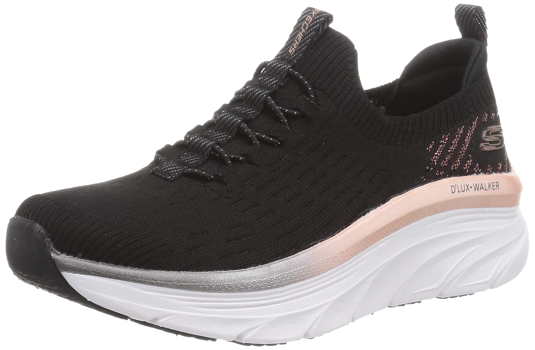 Skechers Women's Sneaker, Black Knit Rose Gold Trim, 7.5
