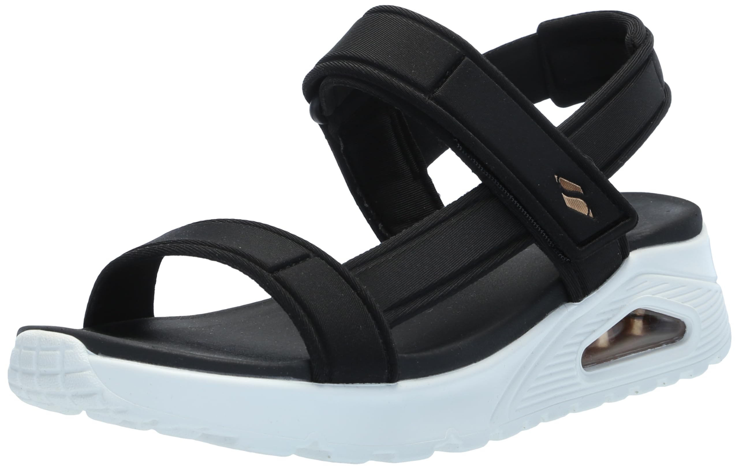 DescriptionHeat up the season with style in Skechers Uno - Summer Stand2. This T-strap sandal inspired from our iconic Uno silhouette features a synthetic durabuck upper with adjustable slingback strap. This design is complete with a cushioned Yoga Foam® and a visible Skech-Air® airbag midsole.