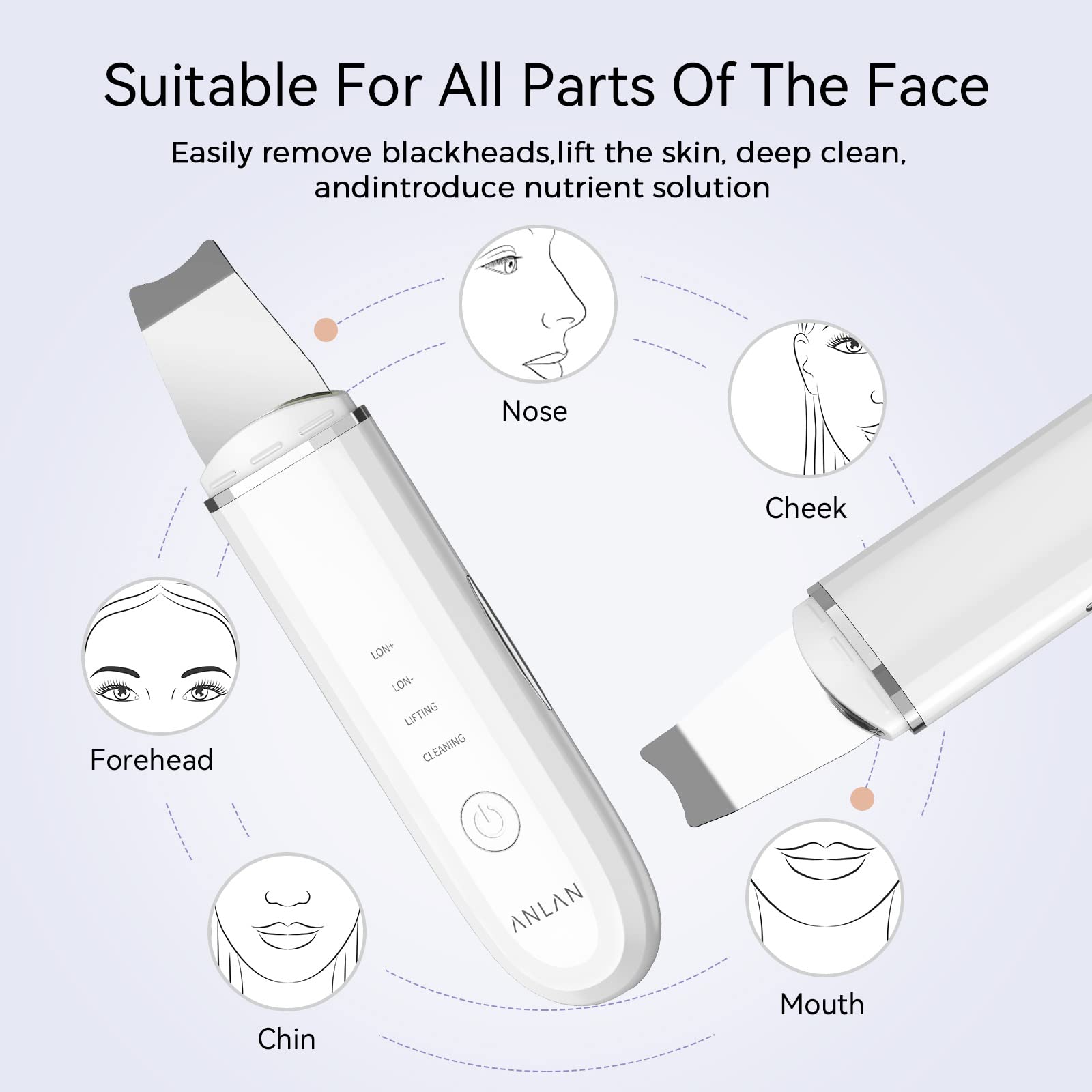 Skin Scrubber, ANLAN Ultrasonic EMS Ion Exfoliating Device Face Cleanser and Blackhead Remover Pores Cleaning Wrinkle Remover Comedone Extractor Skin Care With 4 Modes USB Rechargeable