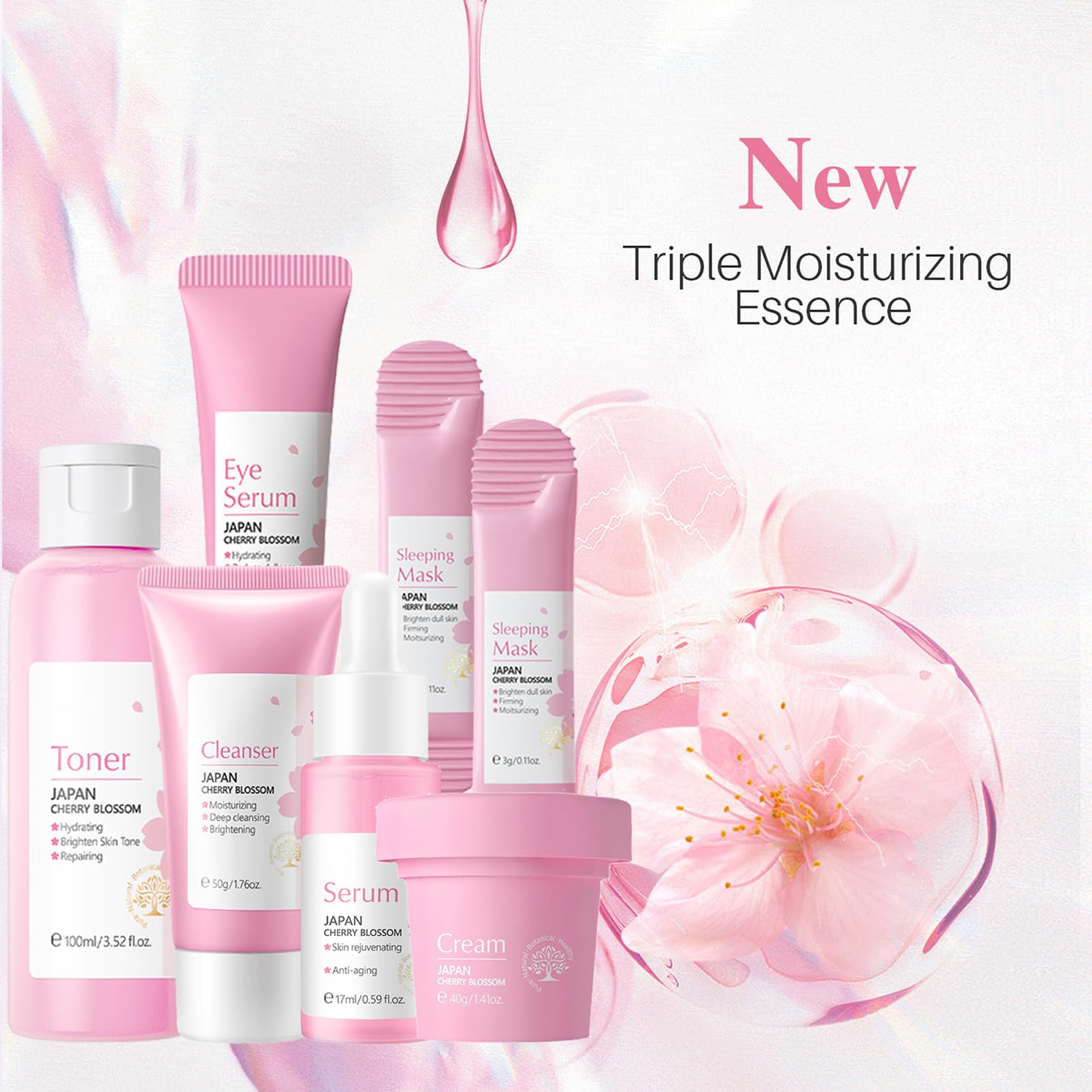 Skincare Gifts Set For Teenage Girls,Cherry Blossom Skincare Sets,Facial Kit,Pamper Sets For Women Gifts,Skin Care Sets & Kits - Cleanser, Face Serum, Face Cream,Toner,Eye Cream,Mask (SetA)