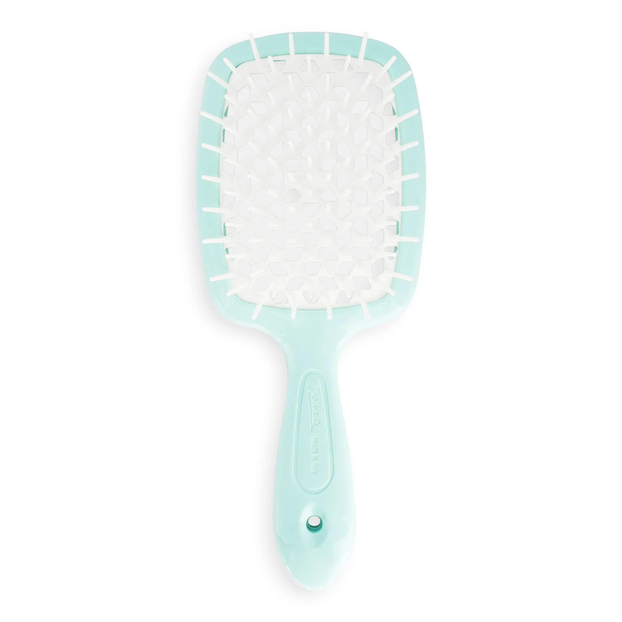 Janeke's amazing Superbrush is now available in a smaller version that's perfect for on the go. The Small Superbrush has all the features of the original but measures only 6.8" in length. The patented "honeycomb" design allows for enhanced airflow so hair dries quicker and with less heat damage from blow drying. The soft, flexible bristles glide through wet or dry hair making it a great brush for kids. Pop one in your gym or travel bag for quick touch ups. Use your Small Superbrush to evenly ditribute conditioner or hair masks. Easily rinses clean with water - can also be used while shampooing to gently massage scalp. All Janeke products are made in Italy.
