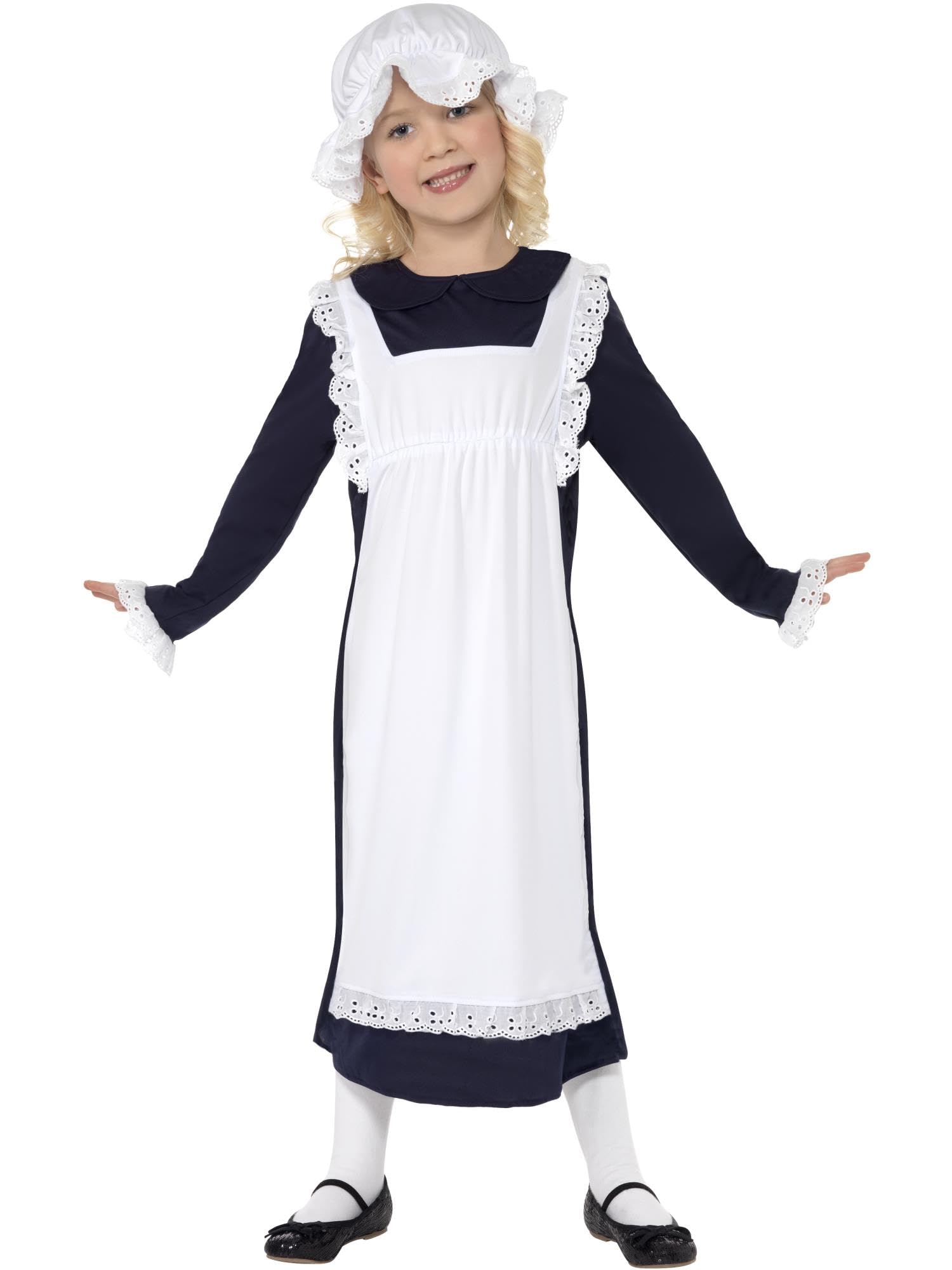 Product DescriptionLooking for a seriously fun disguise? Try a Smiffy's costume on for size! Package includes: 1 x Smiffy's Children's Victorian Poor Girl Costume, Dress, Apron & Hat, Ages 4-6, Colour: Black and White Safety WarningKeep away from fire. Box Contains1 x dress1 x apron1 x bonnet