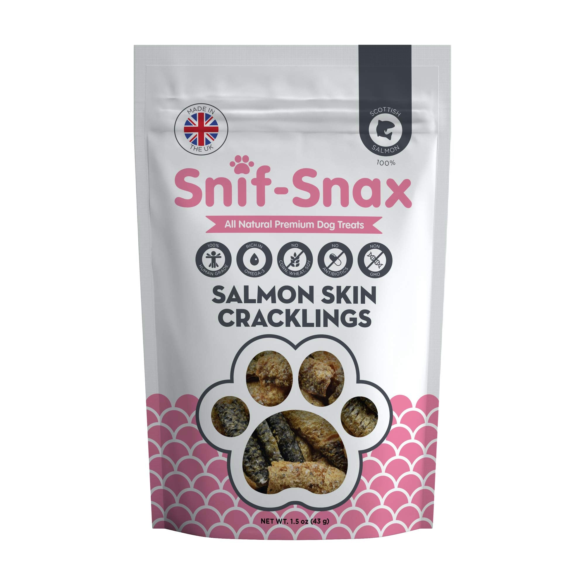 Each delicious bite of these Snif-Snax treats will put a smile on your fur baby's face. These all-natural smoked salmon skin rolls contain 53.0% crude protein and high amounts of Omega-3 for dogs' greater mobility by supporting pain relief and reduction in inflammation. Their joint health helps your aging dog regain his puppy-like vitality and enjoy greater quality of life.