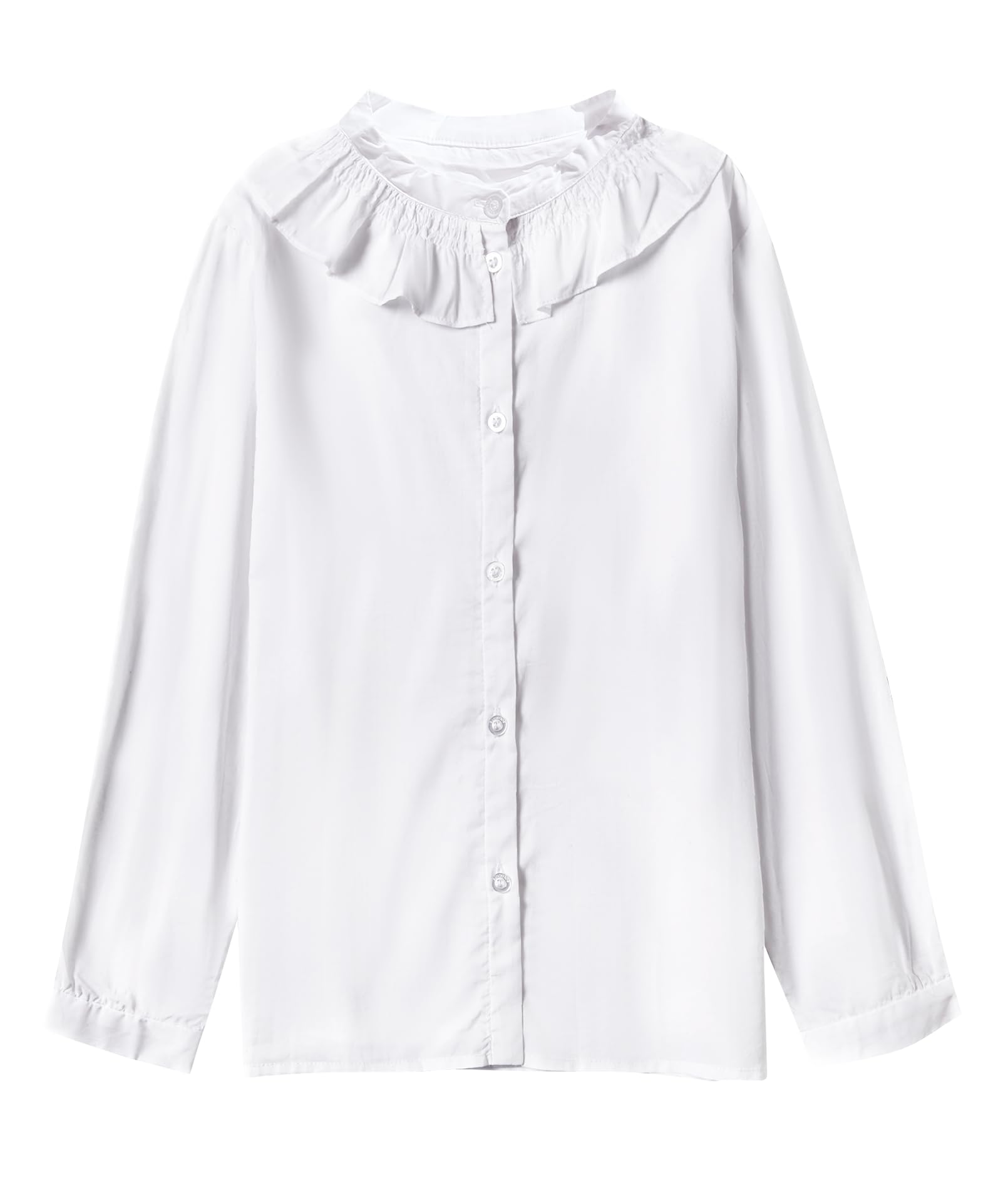 SOLOCOTE Girls White Blouse Ruffle Long Sleeve Button Down Shirts Princess Cotton Loose Soft Tops Spring and Summer, SLN9011 9-10 White