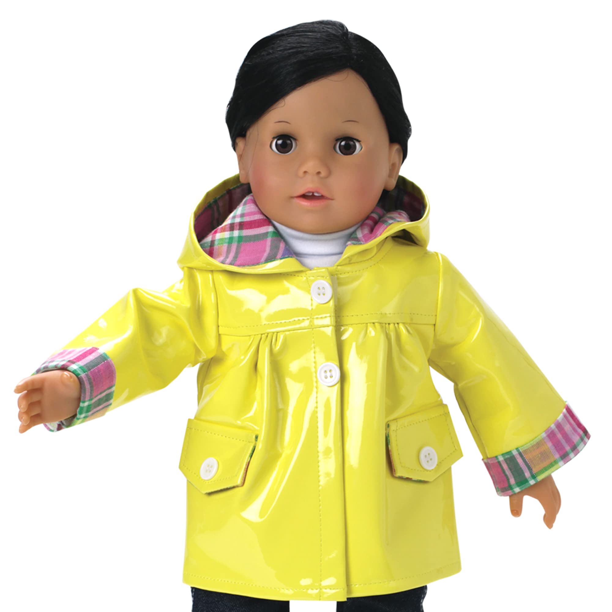 Your little one and their doll will be hoping for rainy days with this absolutely adorable set from Sophia's. The light pink tone of raincoat’s plaid lining perfectly balances the bold yellow tones of the jacket and boots, while the hot pink leggings keep the outfit bright and cheerful. Comes with raincoat, boots, and leggings, Perfectly styled to fit Sophia's dolls and other 18" dolls from most leading brands (doll not included). Sophia's brings to life the magic friendship between a kid and dolls through beautifully made dolls, doll furniture, and doll accessories.