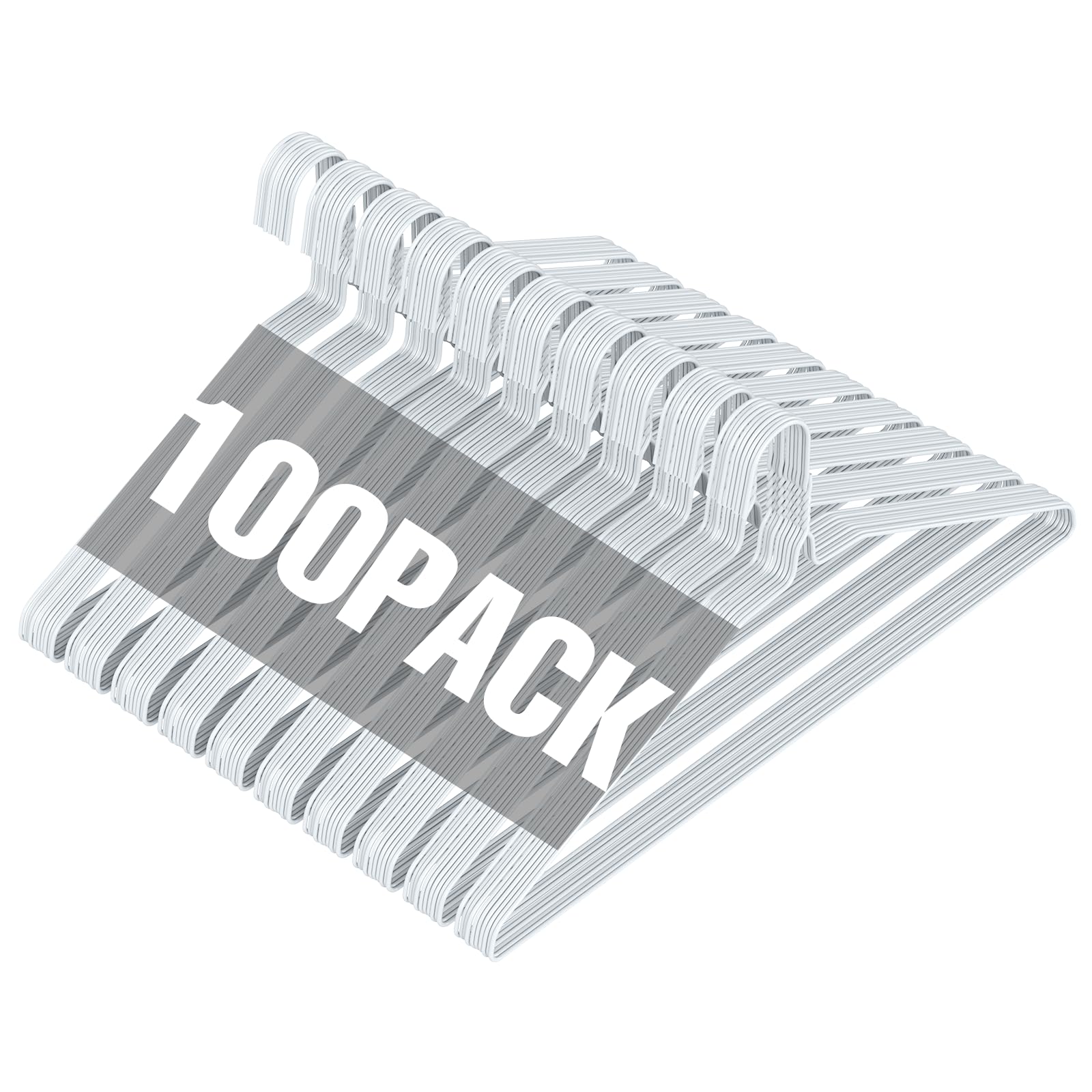 SPECILITE Wire Hangers 100 Pack, Metal Wire Clothes Hanger Bulk for Coats, Space Saving Metal Hangers Non Slip 16 Inch 12 Gauge Ultra Thin for Standard Size Suits, Shirts, Pants, Skirts-White