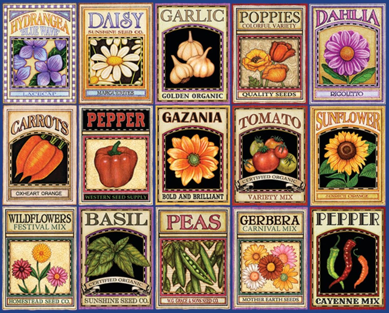 Start putting together your garden (puzzle) with "Garden Goodness," our 1000 piece jigsaw puzzle. This collage of illustrated seed packets will be sure to put you in the gardening mood! Exercise Memory - Jigsaw Puzzles sharpen cognitive function. Current neurology experts assert that puzzles stimulate neuroplasticity and can even slow progressive memory loss. Deepen Connections - Conversation flows naturally as your sort and interlock the design. It's like we always say: Love completes the puzzle. Relieve Stress - Escaping into the calm of puzzling for as little as 20 minutes can soothe anxieties. It's the perfect digital detox for you and your loved ones.