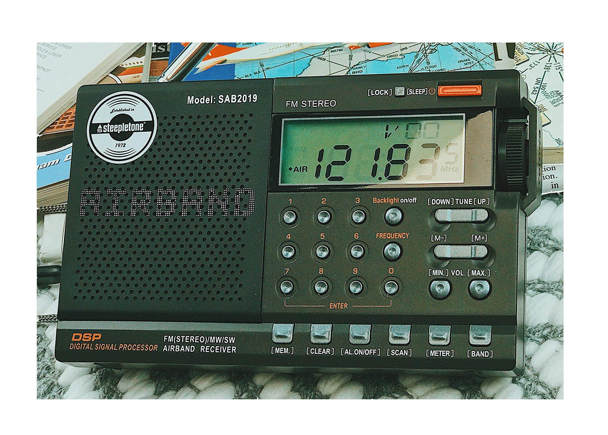 Steepletone SAB2019 Airband Radio Receiver, Airband, Shortwave, FM Radio (Radio + Batteries + Earphone + Mains Power Adapter). Compact Radio Size (approx: 8.9cm high x 14.2cm Width x 2.7cm depth). NOTE: Airband is basic, this is NOT a Radio Scanner, so ideal at AirDays where frequencies are displayed