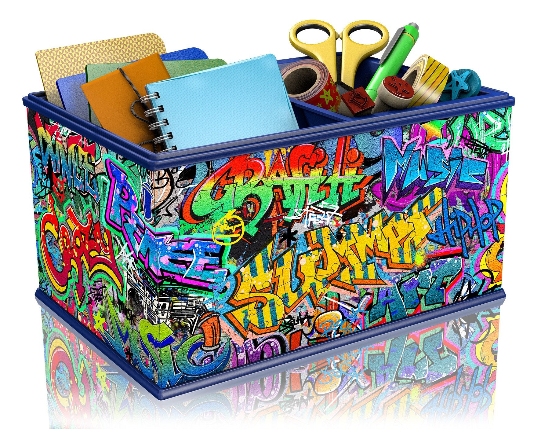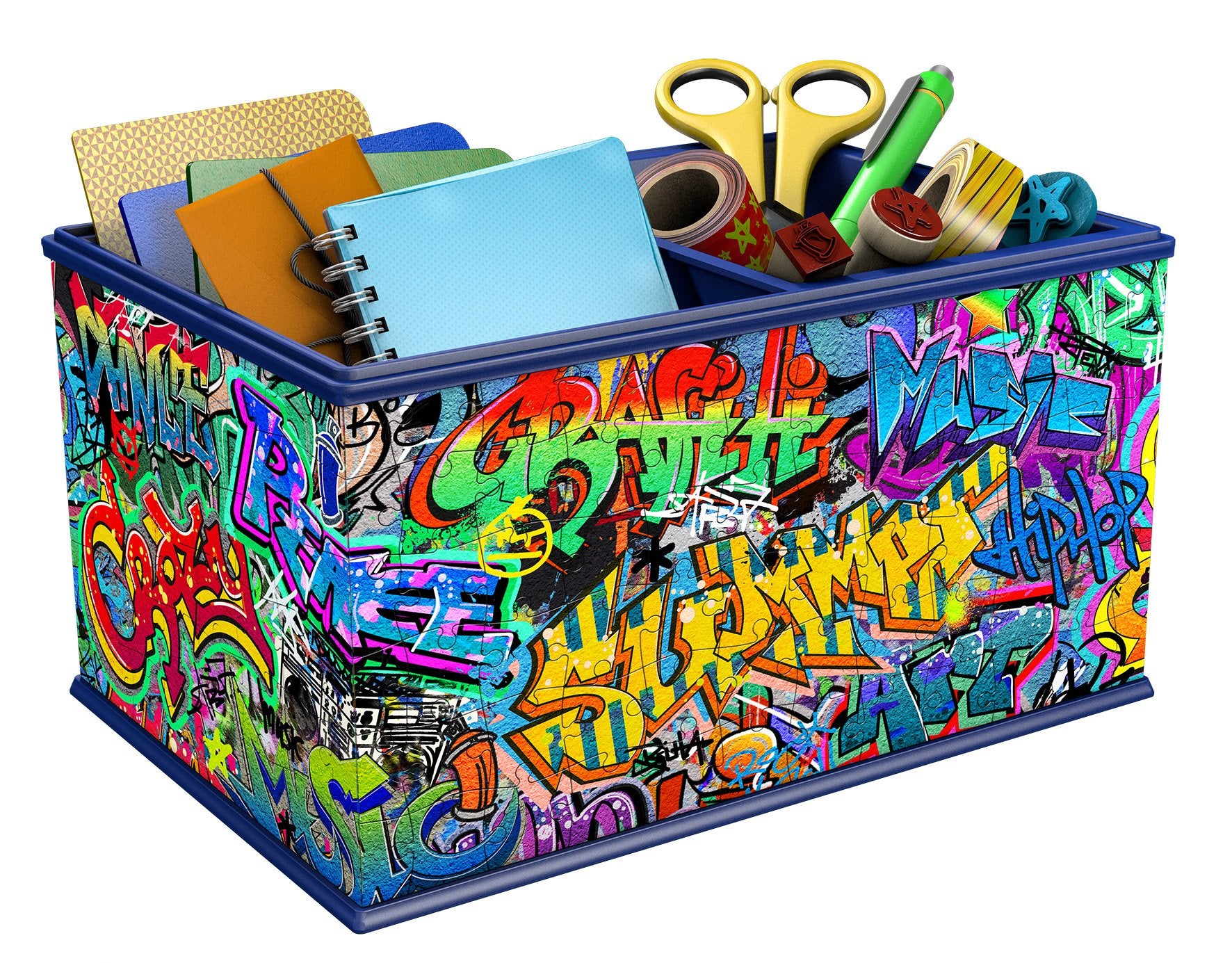 Assemble your very own, super-cute storage box with this 2-in-1 plastic puzzle craft! find and snap together the sturdy, numbered pieces, then insert the included compartment and accessories to create the perfect place to store letters, supplies, and special treasures. Featuring a gorgeous graffiti pattern, this 216-piece premium puzzle utilizes Easy-Click technology and measures 9" x 6" x 5.25" when complete.