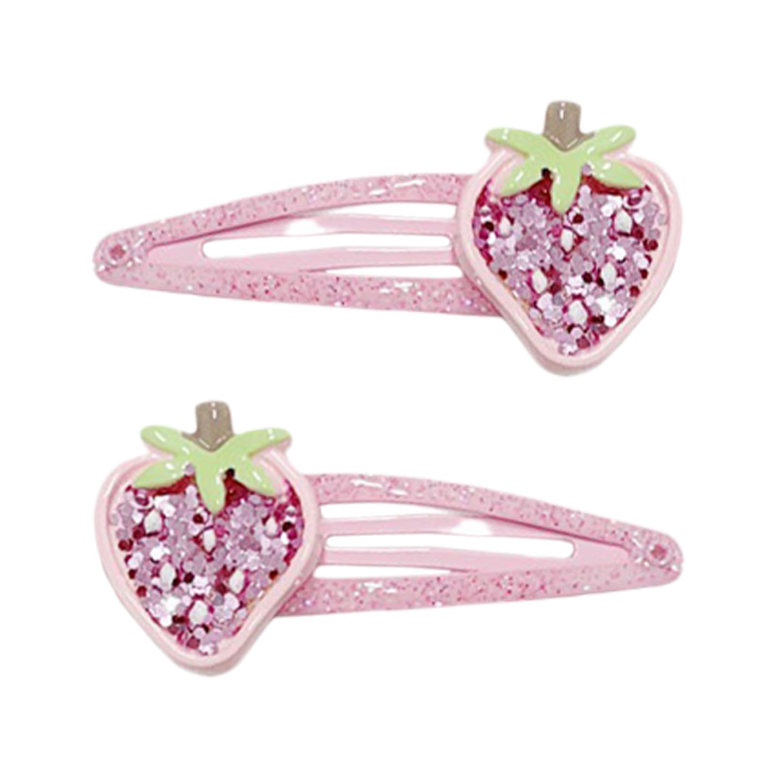Strawberry Hair Clips for Baby Girls - 2Pcs Pink Glitter Rhinestone Metal Snap Hair Clips Hair Barrettes Hair Pink Accessories for Girls Toddlers Kids and Teens Gifts