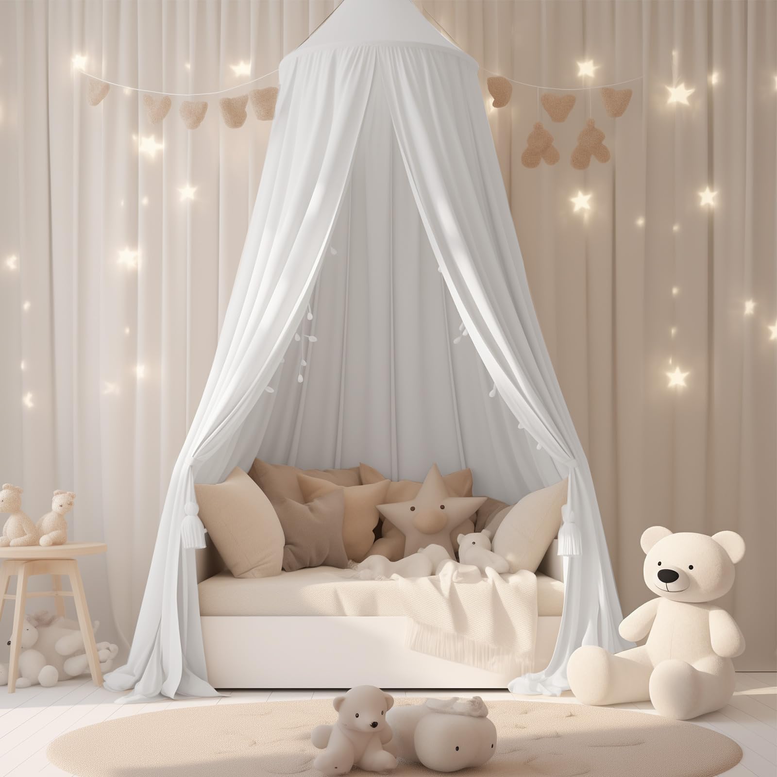 Sublaga Wihte Canopy, Princess Bedroom Decor, Canopy for Girls Room, Room Decorations for Girls, Girls Canopy for Bed, Soft Smooth Playing Tent Canopy Girls Room Decoration Princess Castle, Dreamy Mosquito Net Bedding, Children Reading Nook Canopies