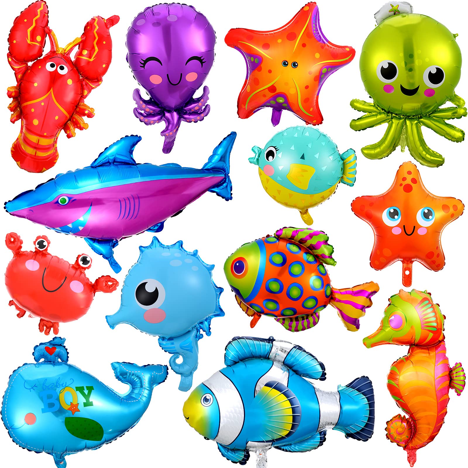 Sumind 14 Pcs Sea Ocean Animal Balloons for Under The Sea Decorations Large Ocean Creature Balloons Fish Octopus Shark Foil Balloons for Boys Girls Birthday Party Baby Shower(Cute Style)