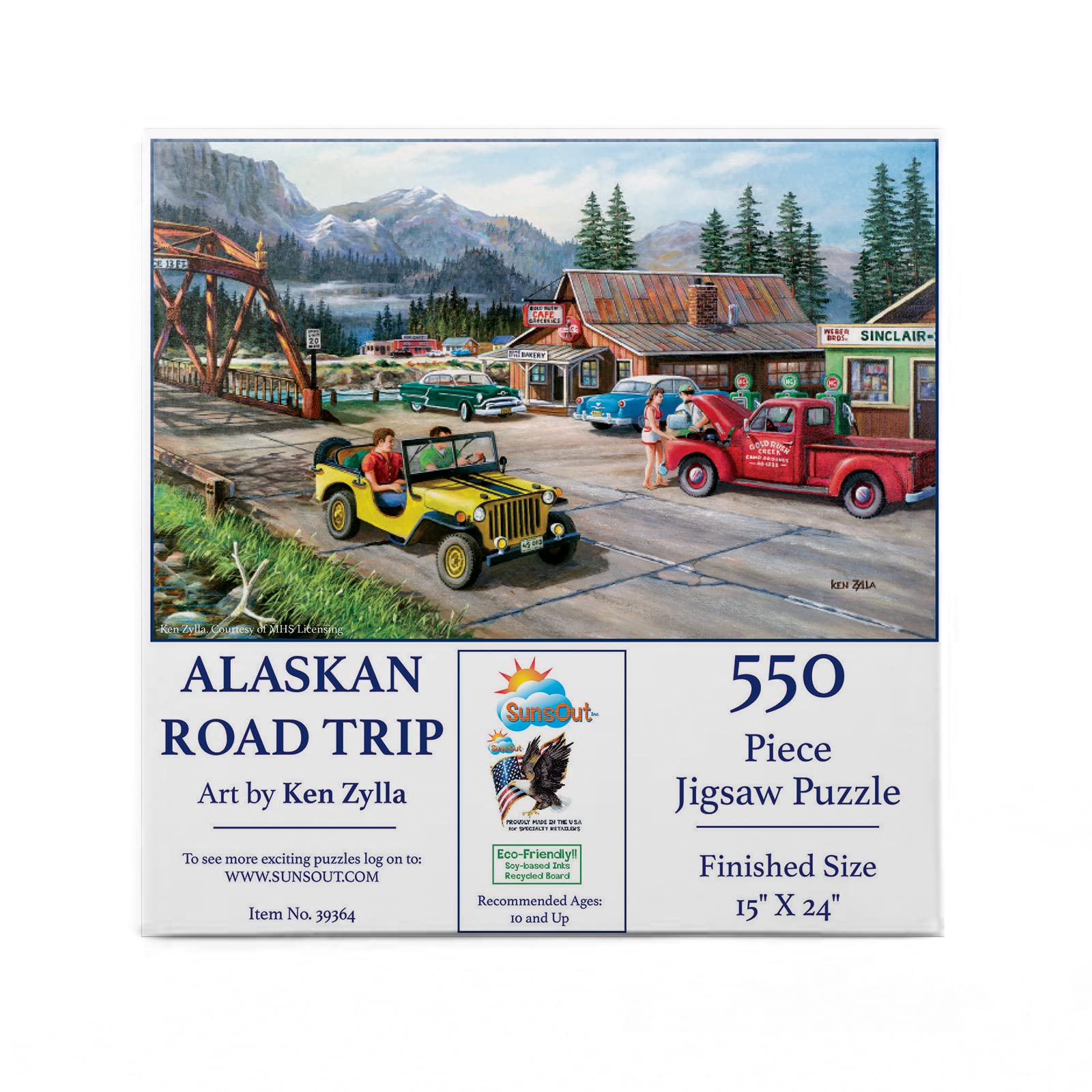 Alaskan Road Trip 550 550 pc Jigsaw Puzzle by SUNSOUT INC - 550 pc Jigsaw Puzzle - Completed size: 15x24" - Puzzle Artist: Ken Zylla - Eco-Friendly - Soy-Based Inks - Recycled Board - Made in the USA - Interlocking Pieces & Durable Construction