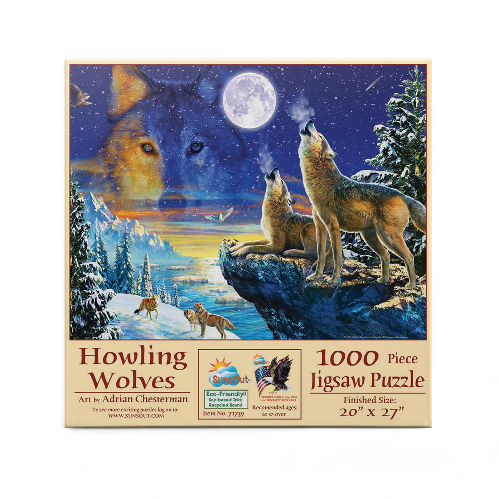 Howling Wolves 1000 pc Jigsaw Puzzle by SunsOut - 1000 Piece Jigsaw Puzzle - Completed Size: 20x27 - Puzzle Artist: Adrian Chesterman - Eco-Friendly - Soy-Based Inks - Recycled Board - Proudly Made in the USA - Interlocking Pieces & Durable Construction