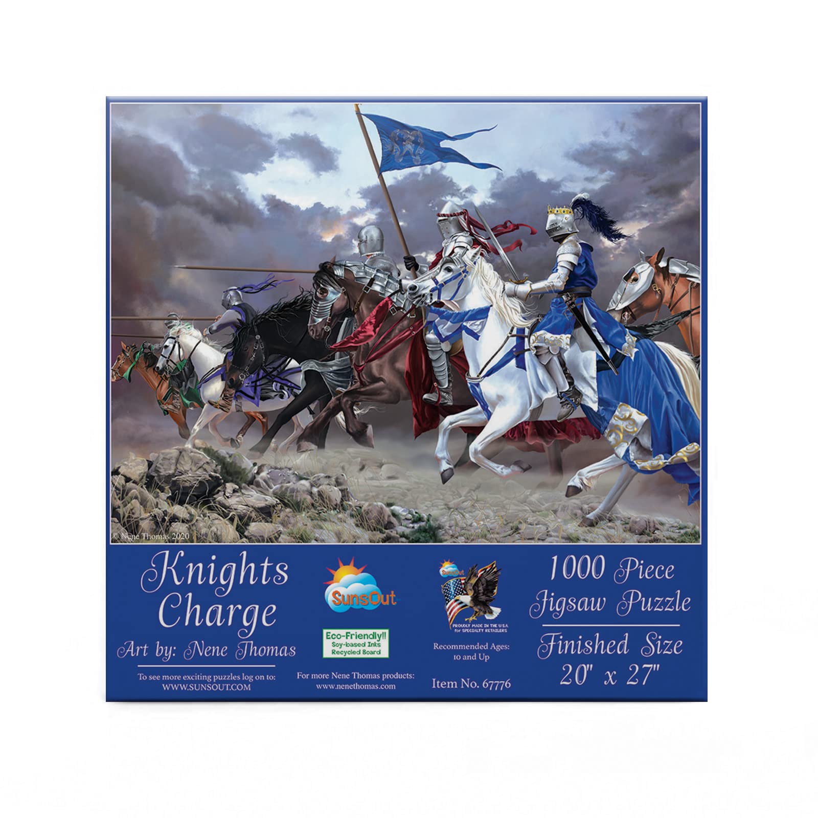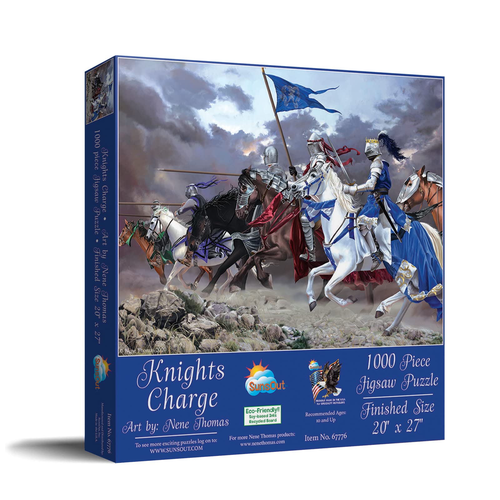 Knights Charge 1000 pc Jigsaw Puzzle by Artist: Nene Thomas - 1000 pc Jigsaw Puzzle - Finished Size: 20x27" - Artist: Nene Thomas - Eco-Friendly - Soy-Based Inks - Recycled Board - Made in the USA- -Interlocking Pieces & Durable Construction
