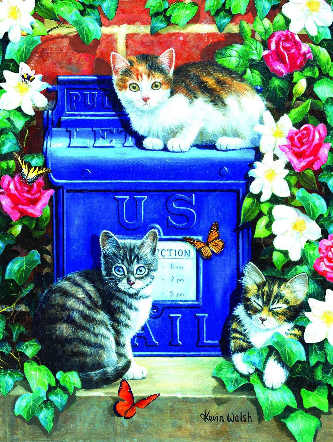 SUNSOUT INC Mail Box Kittens 300 pc Jigsaw Puzzle - 300 pc Jigsaw Puzzle - Finished Size: 18x24 inches - Puzzle Artist: Kevin Walsh - Eco-Friendly - Soy-Based Inks - Recycled Board - Made in the USA - Interlocking Pieces & Durable Construction