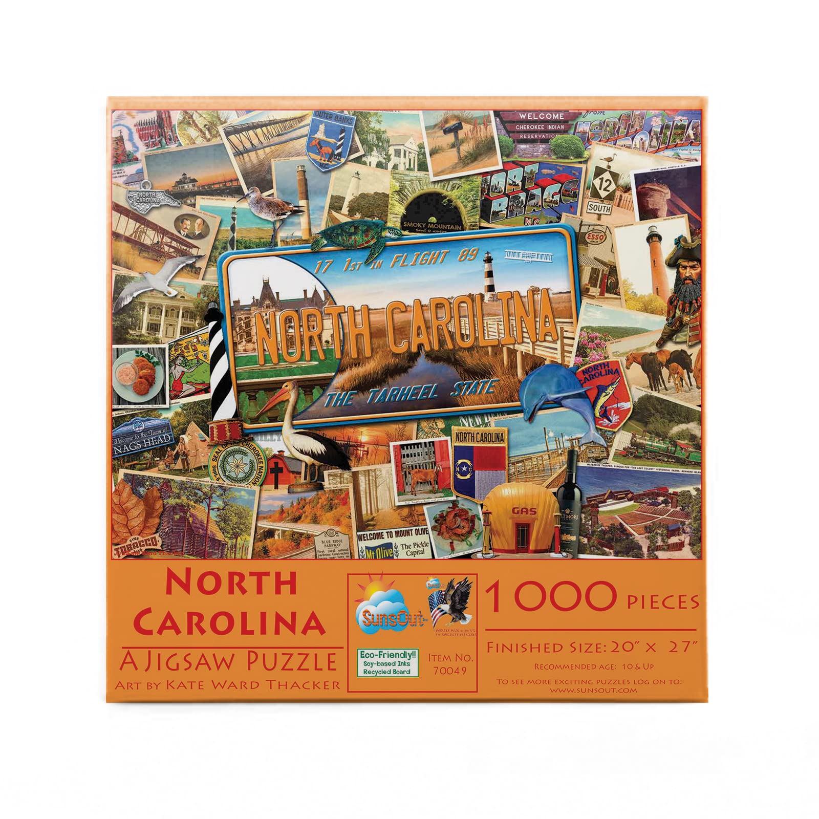 North Carolina 1000 pc Jigsaw Puzzle by SunsOut - 1000 Piece Puzzle - Completed Size: 20x27 inches - Puzzle Artist: Ward Thacker Studio - UPC: 796780700499 - Eco-Friendly - Soy-Based Inks - Recycled Board - Made in the USA - Interlocking Pieces & Durable Construction