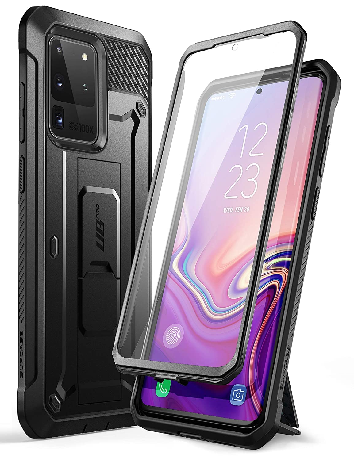 SupCase for Samsung Galaxy S20 Ultra Case with Screen Protector (Unicorn Beetle Pro), [Built-in Belt Clip & Stand] Full-Body Rugged Kickstand Protective Phone Case for Galaxy S20 Ultra 5G, Black