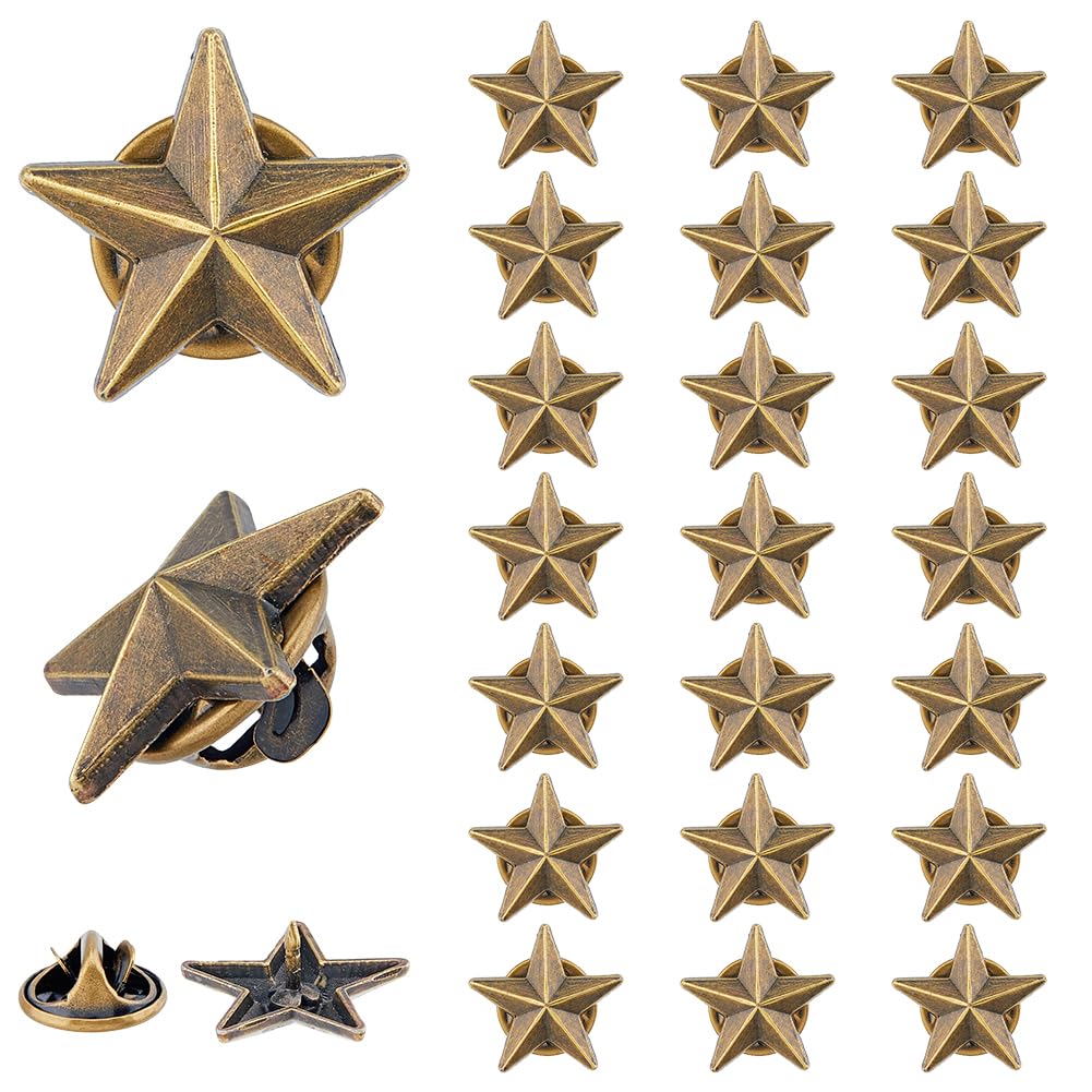 SUPERFINDINGS 24Pcs Alloy Star Badge Lapel Pin Alloy Antique Bronze Lapel Pin Brooches Military Award Pins July Memorial Day Stars Brooches 5 Point Star Badges for Backpack Clothes 17x18x4mm