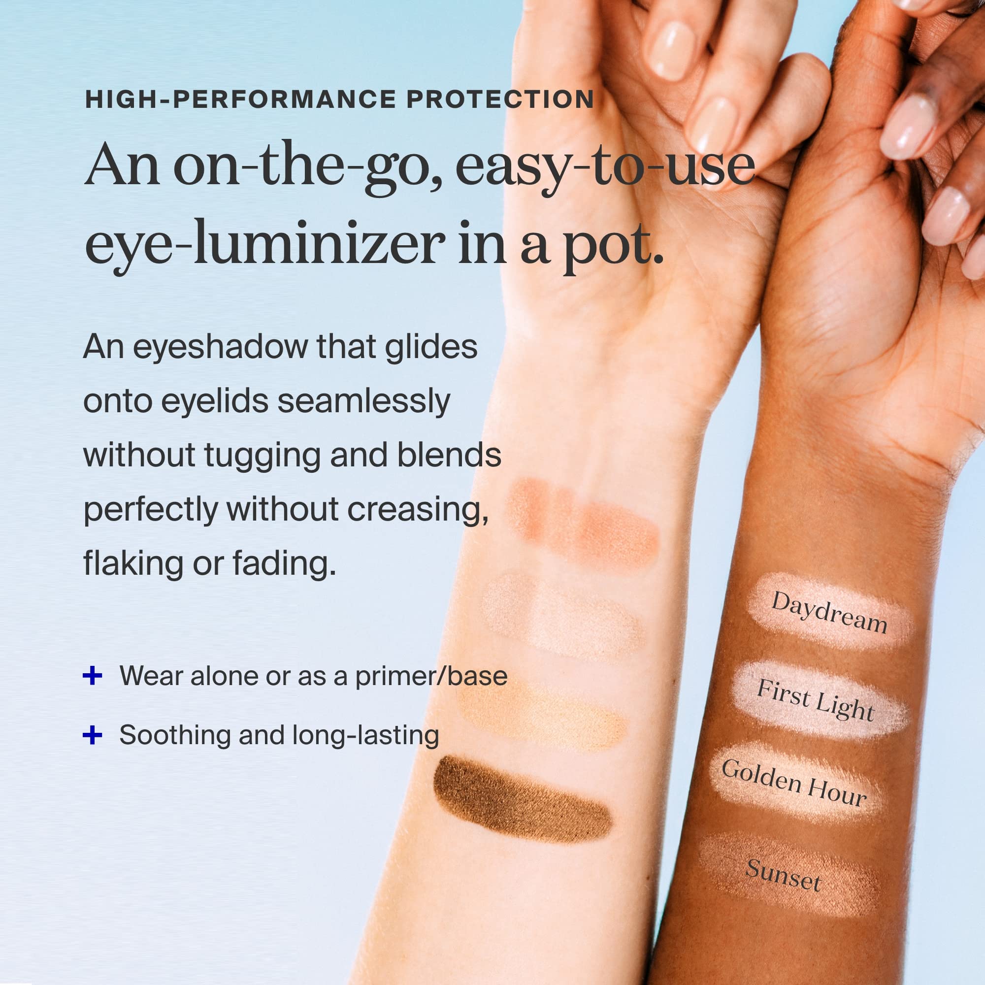 Meet the very first eyeshadow with SPF 30, available in four shimmery shades.