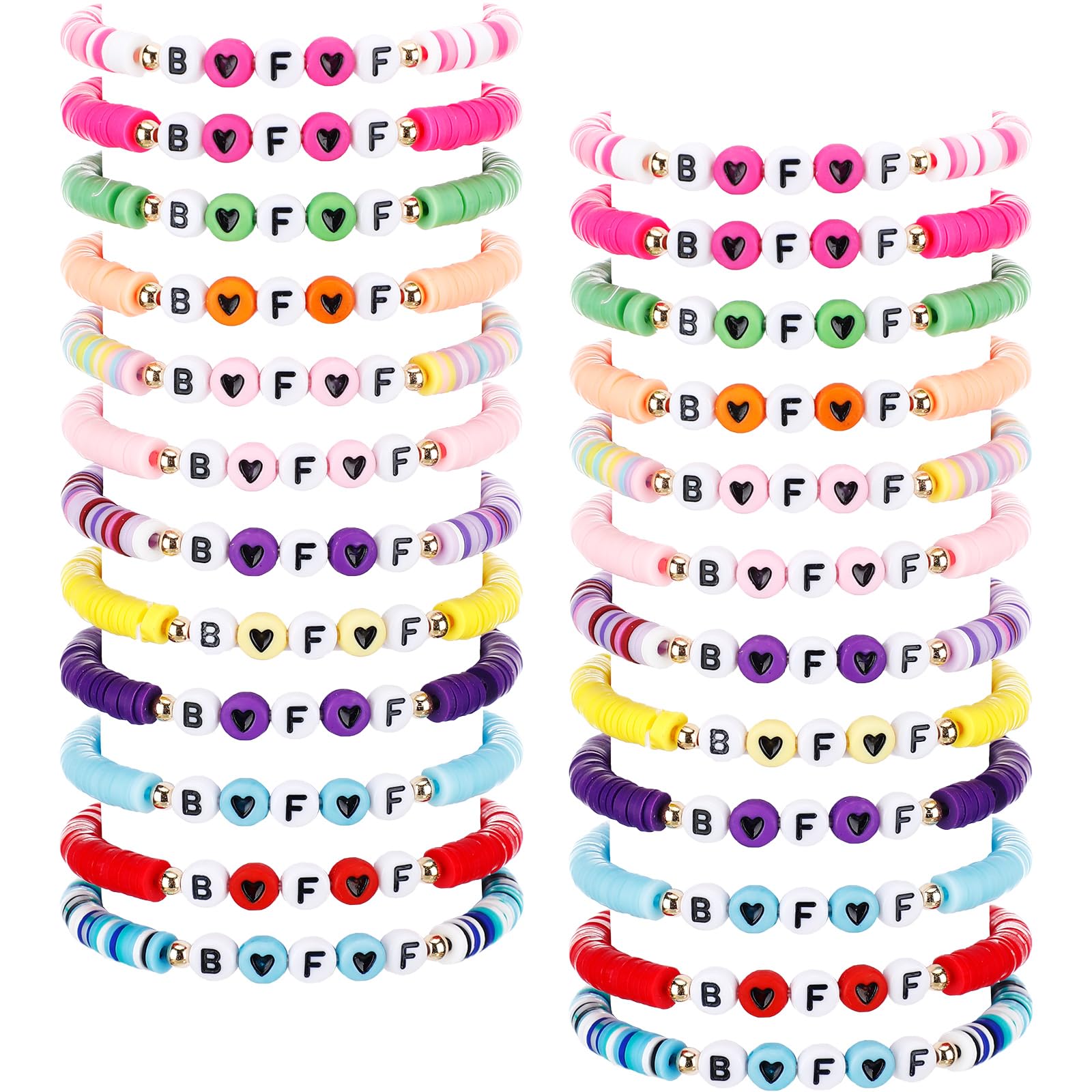 Sureio 24 Pcs Colorful Bff Friendship Bracelets Letter Heart Bestie Friendship Bracelets Surfer Bracelets Stretch Beaded Kids Bracelet for Tween Girls Party Favors Women Back to School Gifts