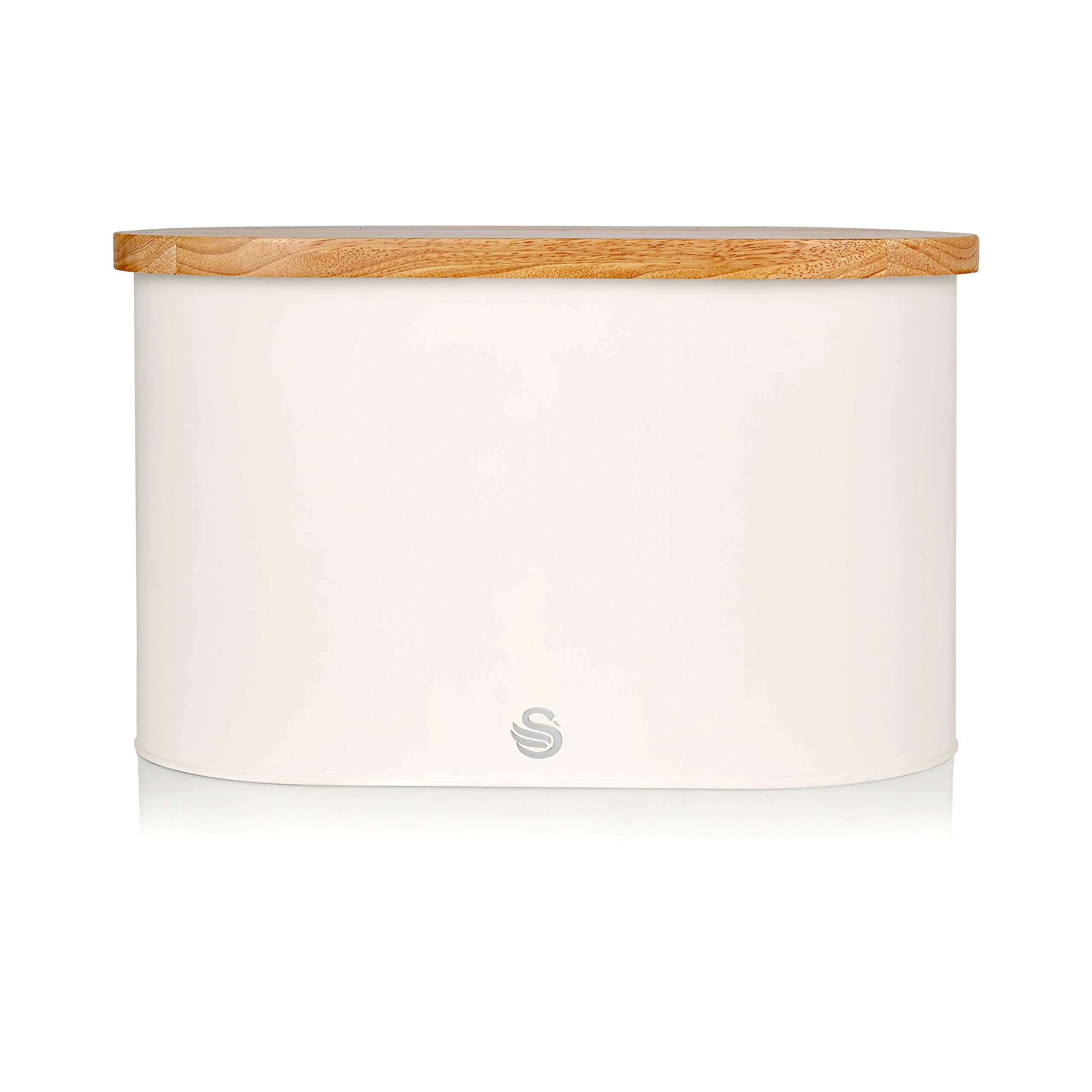 Swan's smart and stylish Nordic Oval Bread Bin is made from durable carbon steel and is designed to keep your loaves, cakes and pastries fresher for longer. With a generous capacity it's the ideal choice for storing large quantities of baked goods, fitting in loaves of bread and cakes of many sizes. Inspired by Scandinavian minimalist design, it combines sophistication and functionality and is a convenient and elegant way to store your bread, cakes, pastries or any other food items you want to keep fresh. It comes in soft touch Cotton White complete with a sturdy bamboo lid. It is both stylish and practical. The lid also doubles up as a cutting board, with a generous size, it is perfect for cutting loaves of bread, cakes and any other food items. Gives you two products in one! Simply take off the lid, place it on the worksurface, take out your bread and use the lid to slice it on. The durable carbon steel means it is strong, sturdy and locks in freshness. It also makes it easy to wipe and clean for easy maintenance. It’s simplistic design fits in and looks beautiful in any kitchen. Also comes with a 2-year guarantee from the date of purchase. Matching items are available as part of the Swan Nordic Range. The Swan Nordic Range is a recognisably Scandi inspired collection utilising the soft wooden textures and neutral colours of Sweden, Norway, Denmark and Finland to truly transport the taste of Scandinavia to your home. Swan is one of the longest established British kitchen appliance and accessory brands. Steeped in history, Swan was responsible for creating the very first electric heating element that could be immersed in water way back in 1933 as well as reintroducing the iconic teas made back to the market in 2009! The British owned company is run by Swan employees who are passionate about the brand’s heritage. Each product is conceived and designed at its headquarters in the UK by in house designers, who are proud to produce award winning appliances, cookware and kitchen accessories available in a host of classic and modern shades that are designed for life.