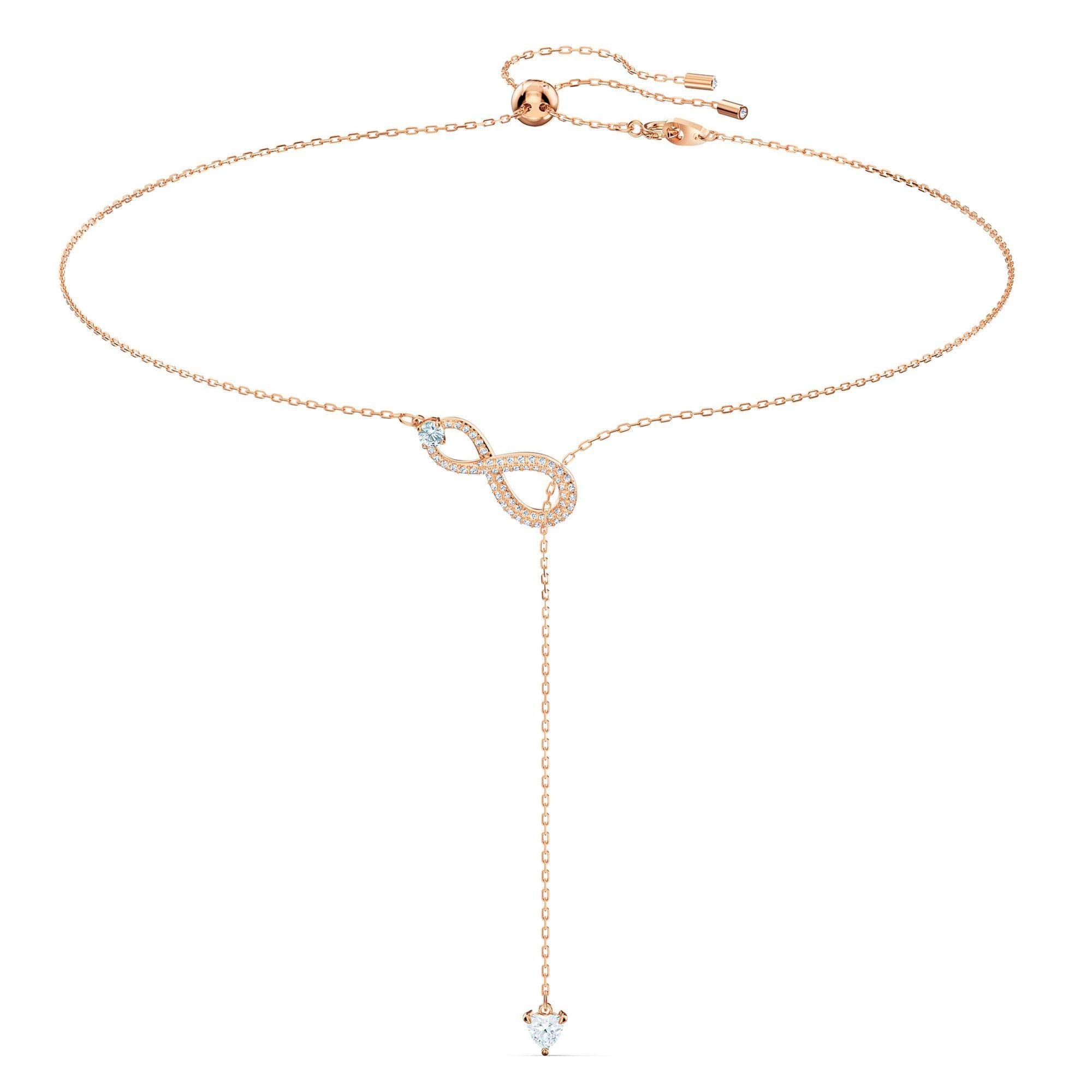 An elegant necklace that celebrates eternal love, this charming Swarovski Crystal Infinity Y Necklace boasts a romantic rose gold-tone finish. The necklace's chain is looped through a Swarovski crystal adorned infinity symbol and is finished with a single Swarovski crystal stone for a brilliant design element. Wear this necklace to elevate your day to day style or on a night out to introduce a little shine.Swarovski Style#: 5521346