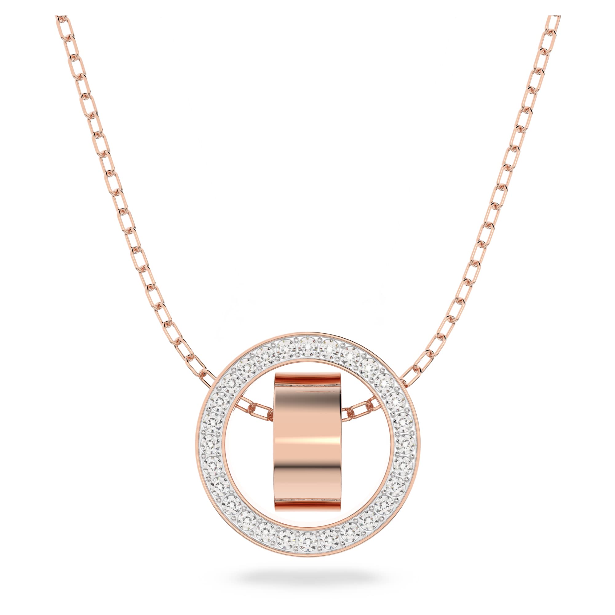 SWAROVSKI Dextera Pendant Necklace with Double Circle Motif in Rose Gold Tone and White Crystal Pavé on a Rose Gold-Tone Finish Chain, Part of the Dextera Collection