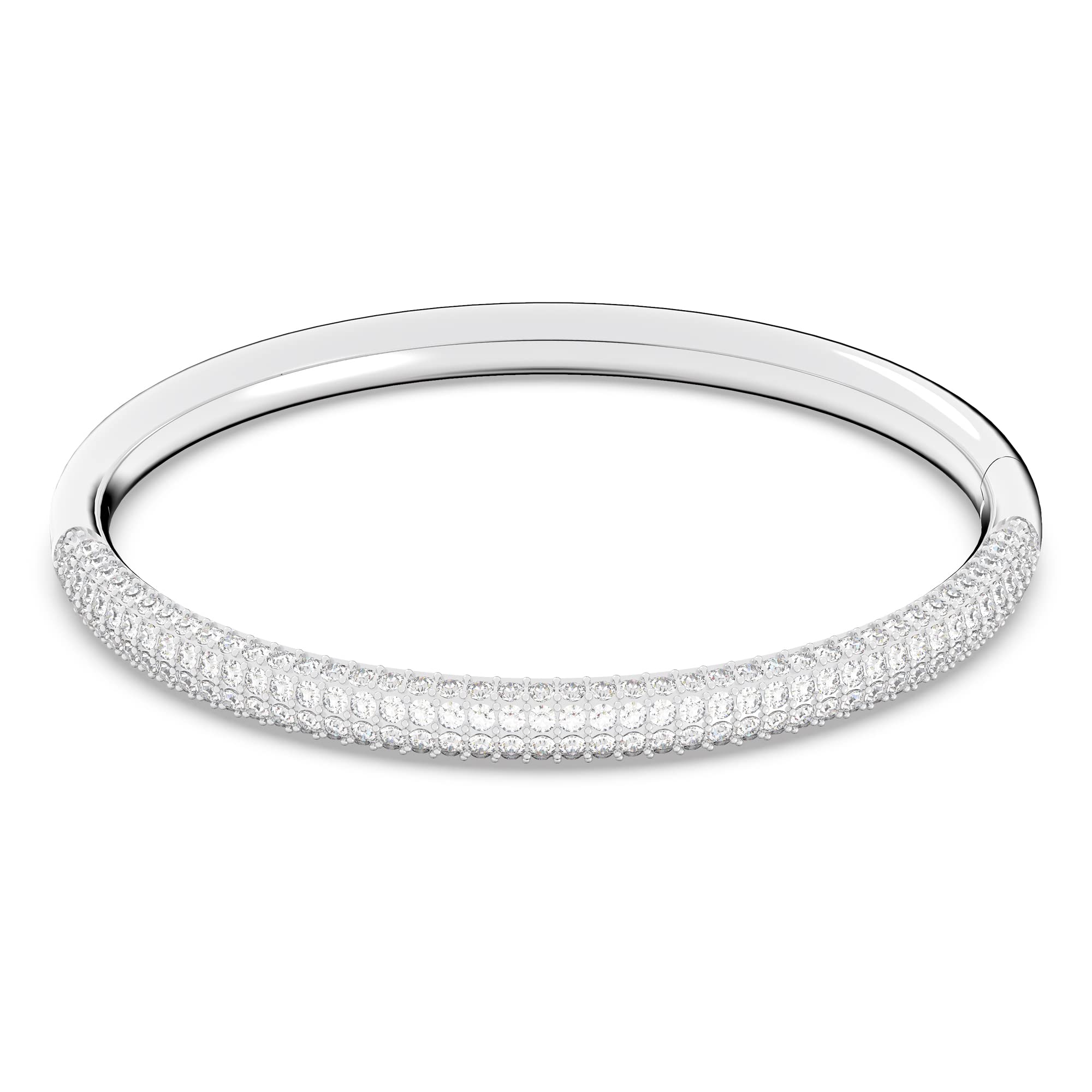 SWAROVSKI Dextera Women's Bangle Bracelet, Large Bracelet with Clear Crystal Pavé on a Rhodium Finished Band with Hinge Closure