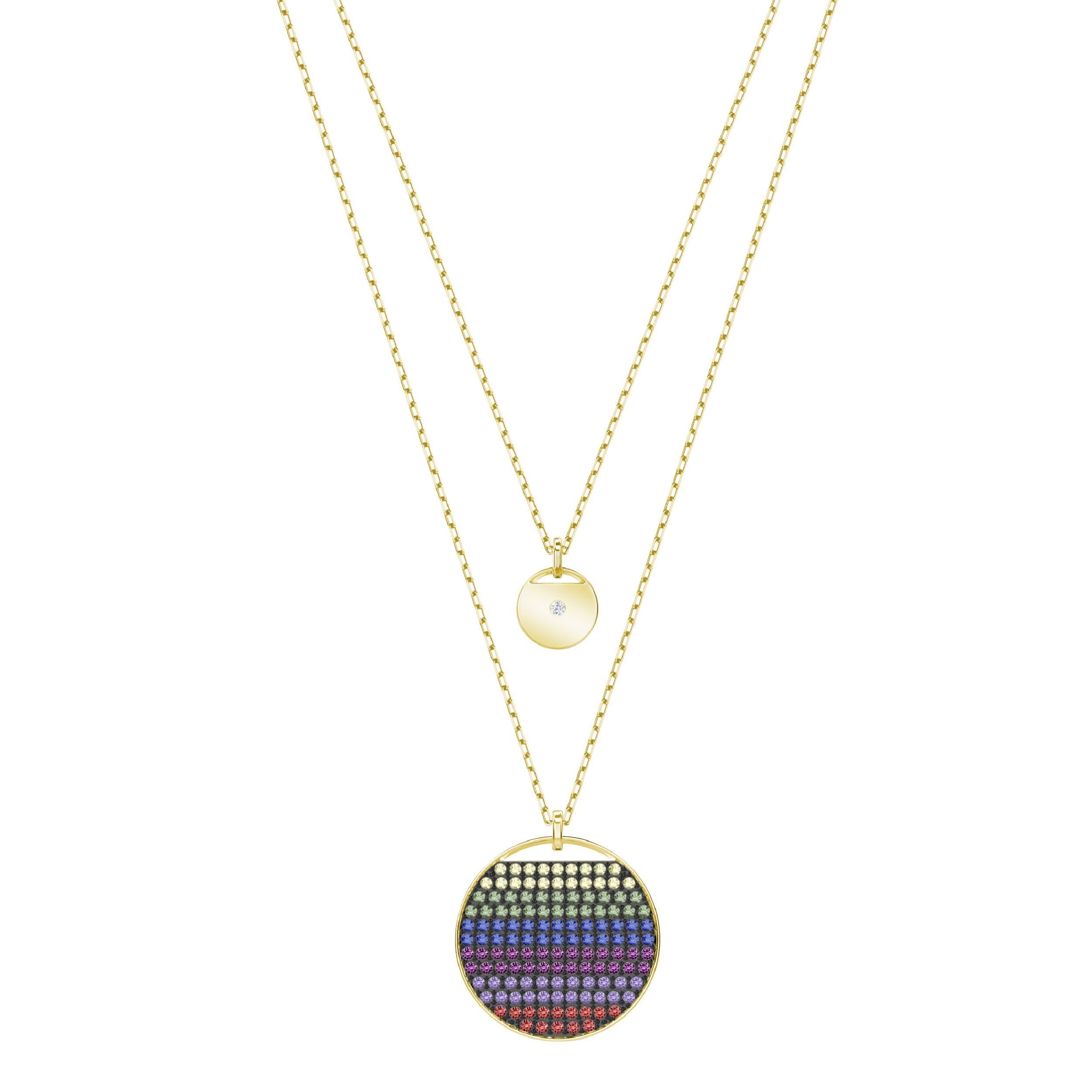 Pendant Ginger Swarovski 5479915, woman multicolored yellow gold bath. This pendant in Swarovski 5479915 layers oriented for women, yellow gold bath. It has multicolored crystals with a disc motif. It belongs to the GINGER collection. Size: 38 cm Pendant: 2x2