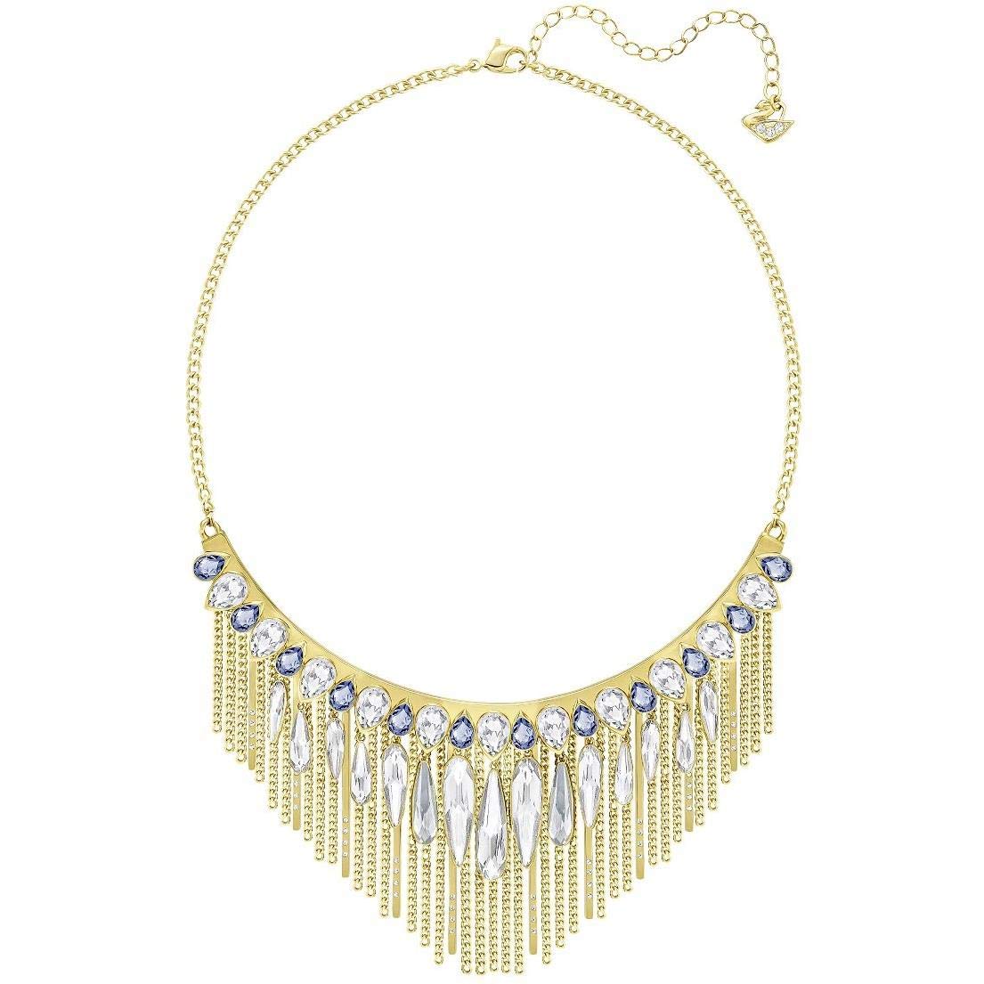 The decadent Gipsy Necklace Large contrasts layered and fringed gold-plated metalwork with cool-colored crystals in varying shapes and settings. A statement piece for your collection it will add a bohemian twist to your summer look. Combine with other items from the Gipsy family for extra impact or wear alone for stand-out style.