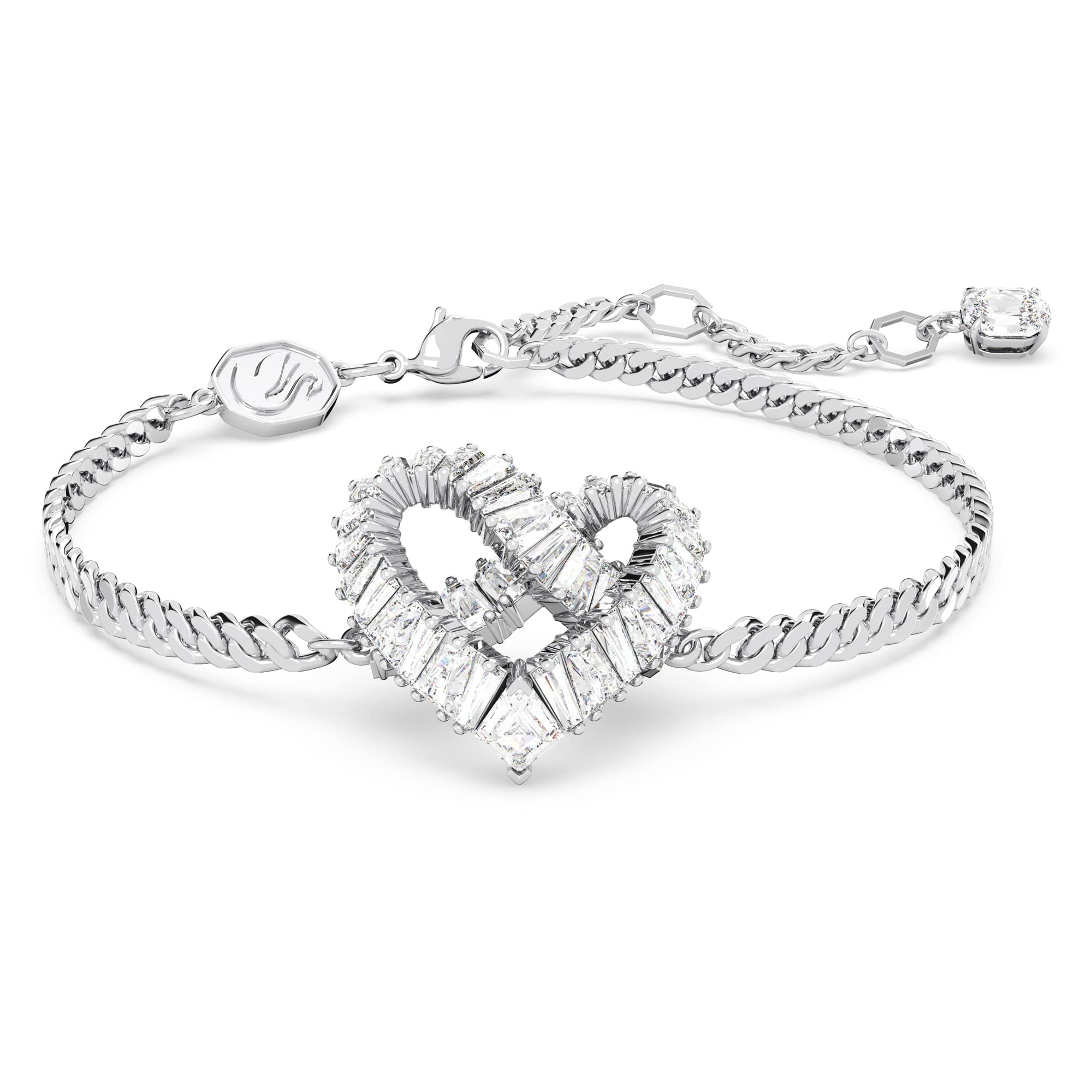 SWAROVSKI Matrix Bracelet, Woven Heart-Shaped Motif with Clear Crystals on a Rhodium Finished Chain, Part of the Matrix Collection