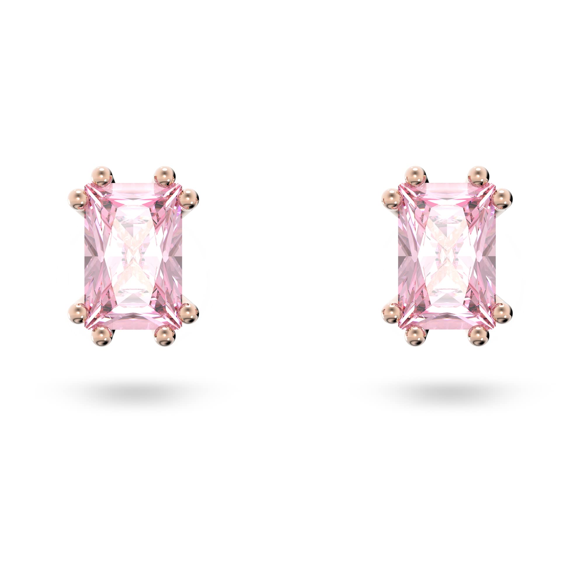 Swarovski Stilla Stud Earrings, Pink Cushion Cut Stones in a Rose Gold Tone Plated Setting, from the Stilla Collection
