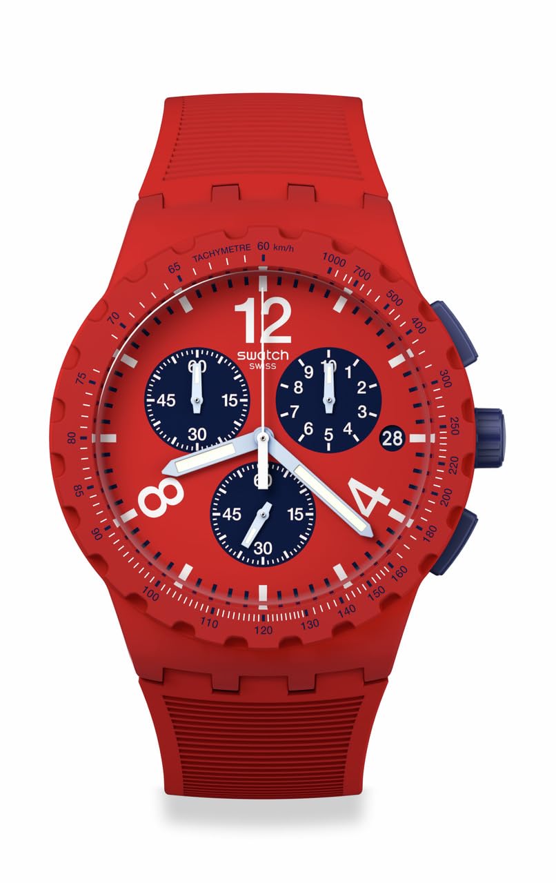 DescriptionDiscover the Swatch Unisex Casual Red Watch from the Essentials Collection - "Primarily Red" edition. With a 42mm round case and water resistance up to 100 feet, this quartz watch is a stylish blend of modern design and functionality. Crafted from eco-friendly materials, it features a durable plastic buckle and delivers a vibrant touch to your casual attire. Elevate your style effortlessly with Swatch, where sustainability meets striking aesthetics.