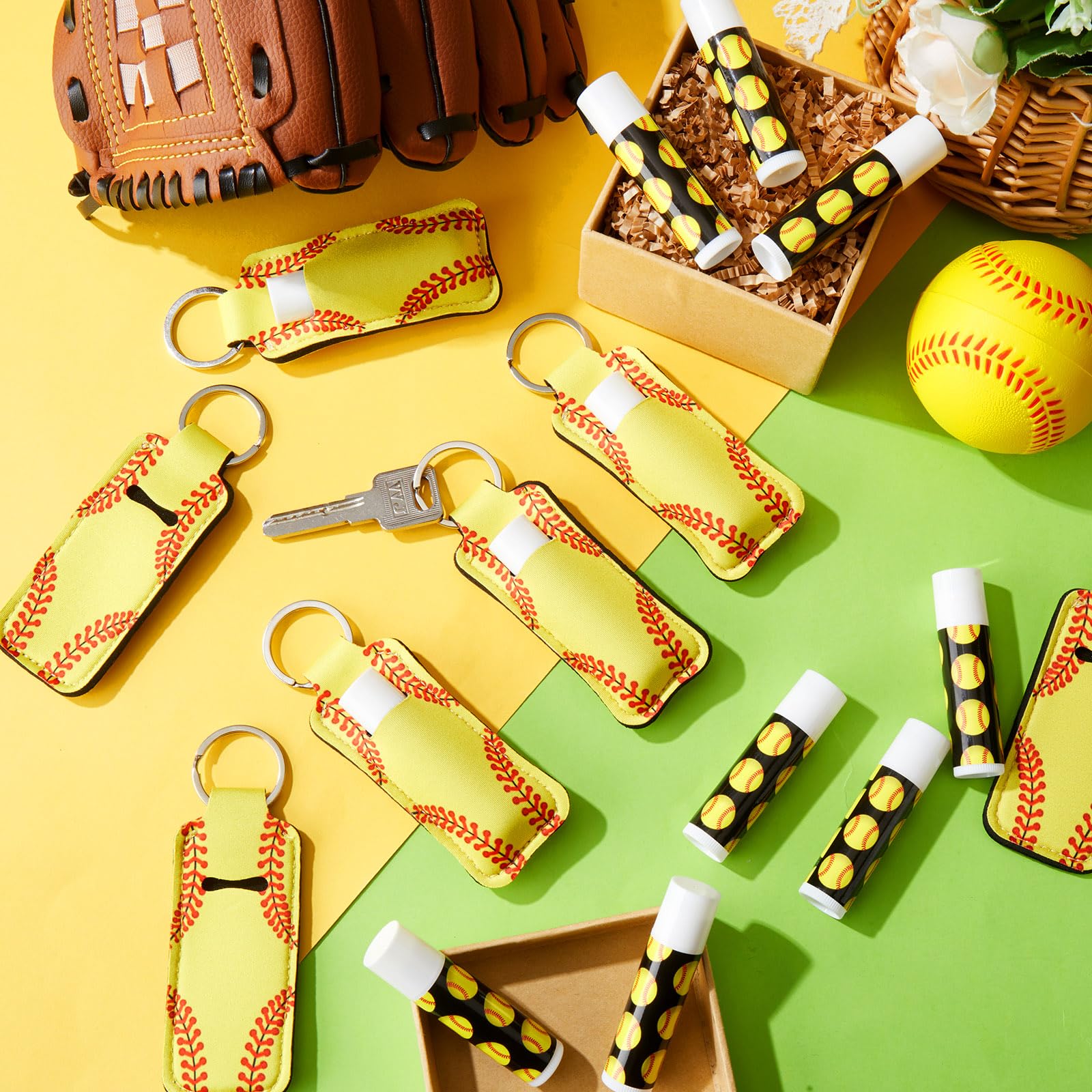 Swiffen 18 Sets Natural Bulk Lip Balm and Moisturizing Lipstick Holder Keychains Set Gift for Team Teen Girls Boy Sports Party Supply (Softball)