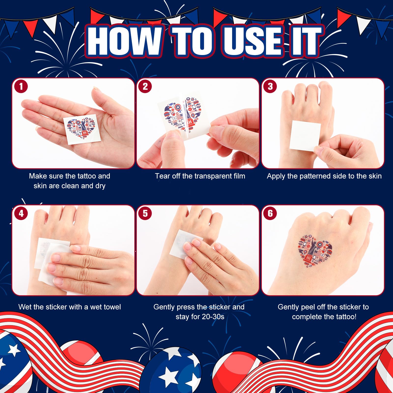 Swiffen 300 Pcs 4th of July Temporary Tattoos Stickers USA Red White and Blue Party Supplies Patriotic 4th of July Stickers Decorations for Independence Day Memorial Day Labor Day Party Favors