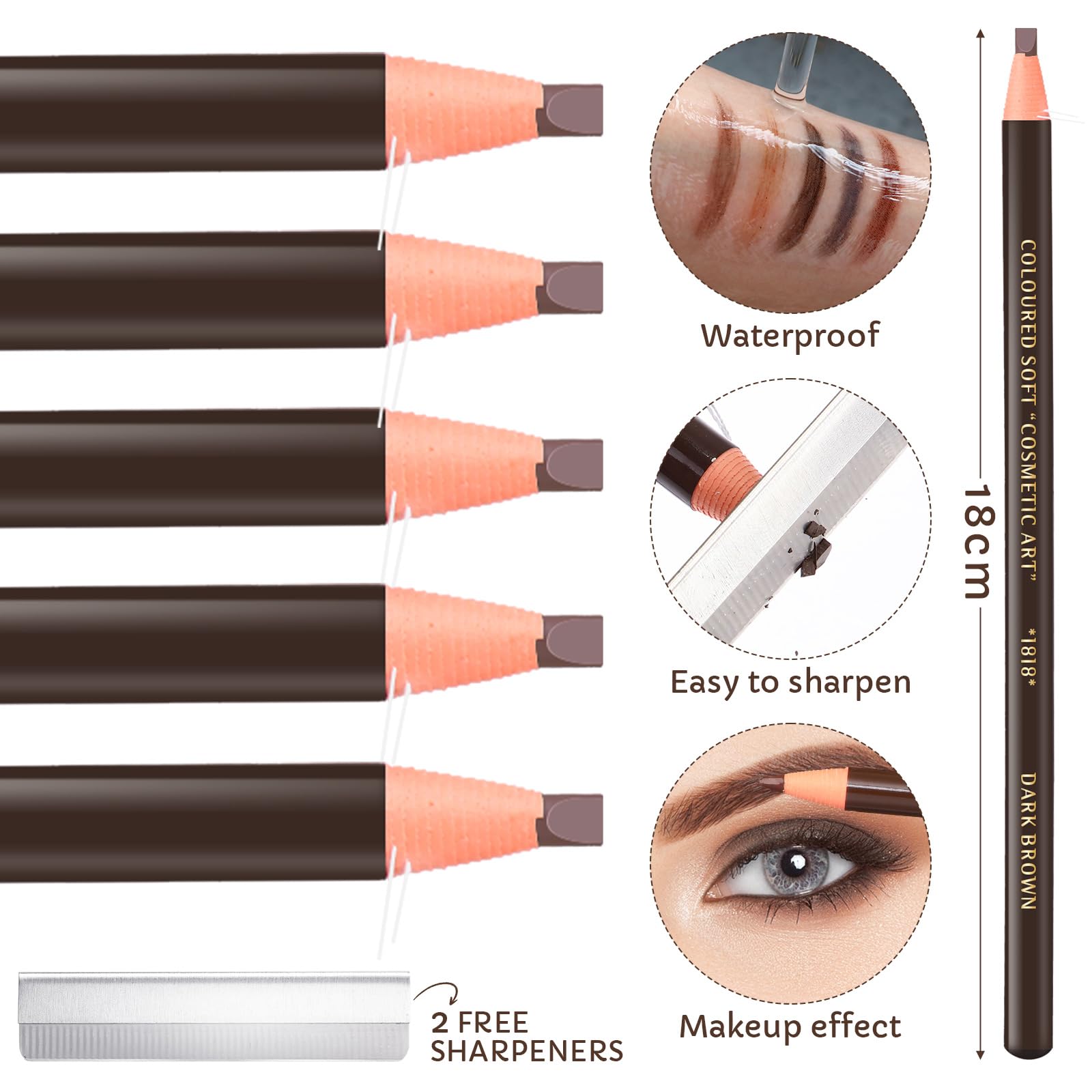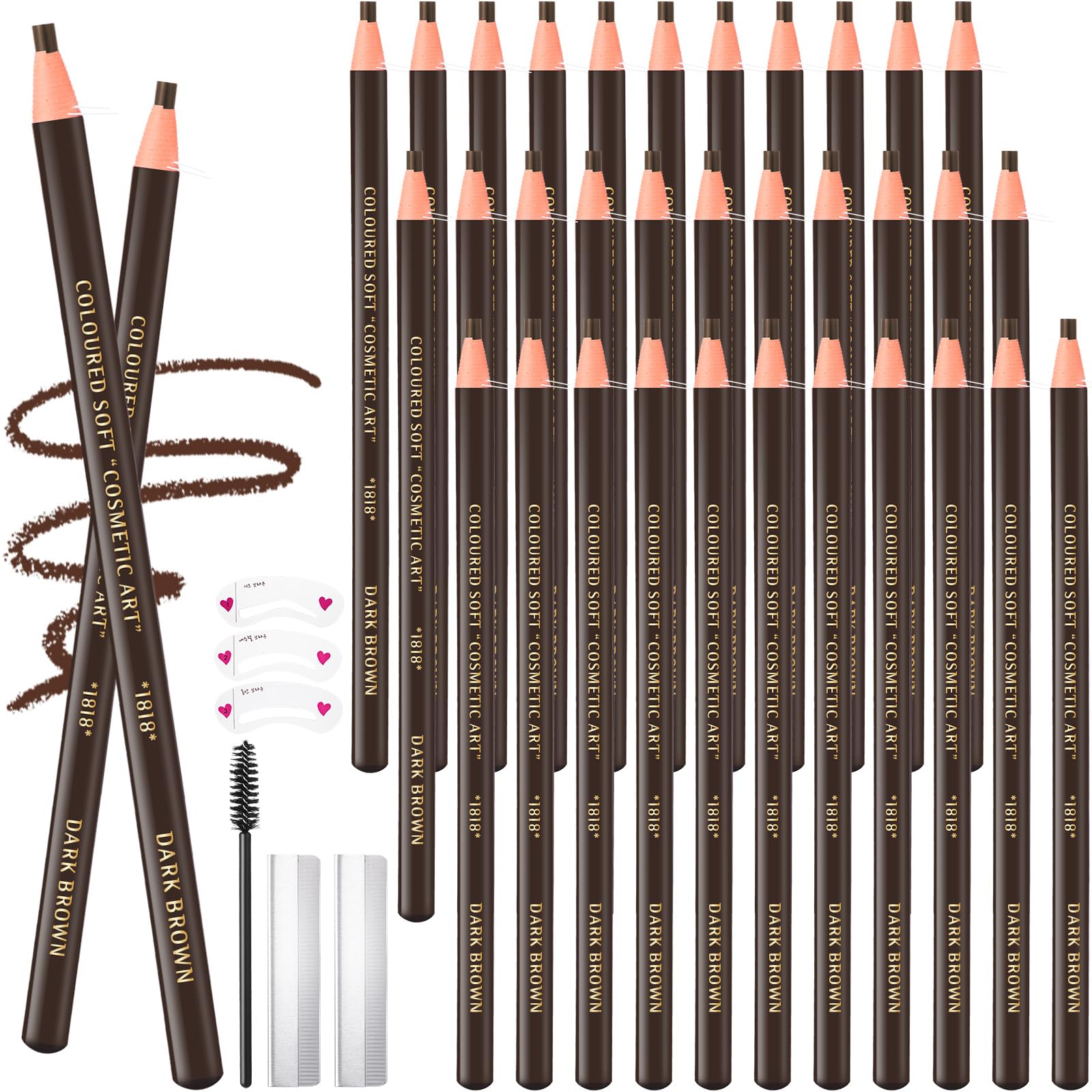 Swiffen 36 Pcs Waterproof Eyebrow Pencil Eyeliner Makeup Brow Pencil Set for Marking Waterproof Eyebrow Pen for Fills Supplies Kit Permanent Eye Brow Liners Long Lasting (Dark Brown)
