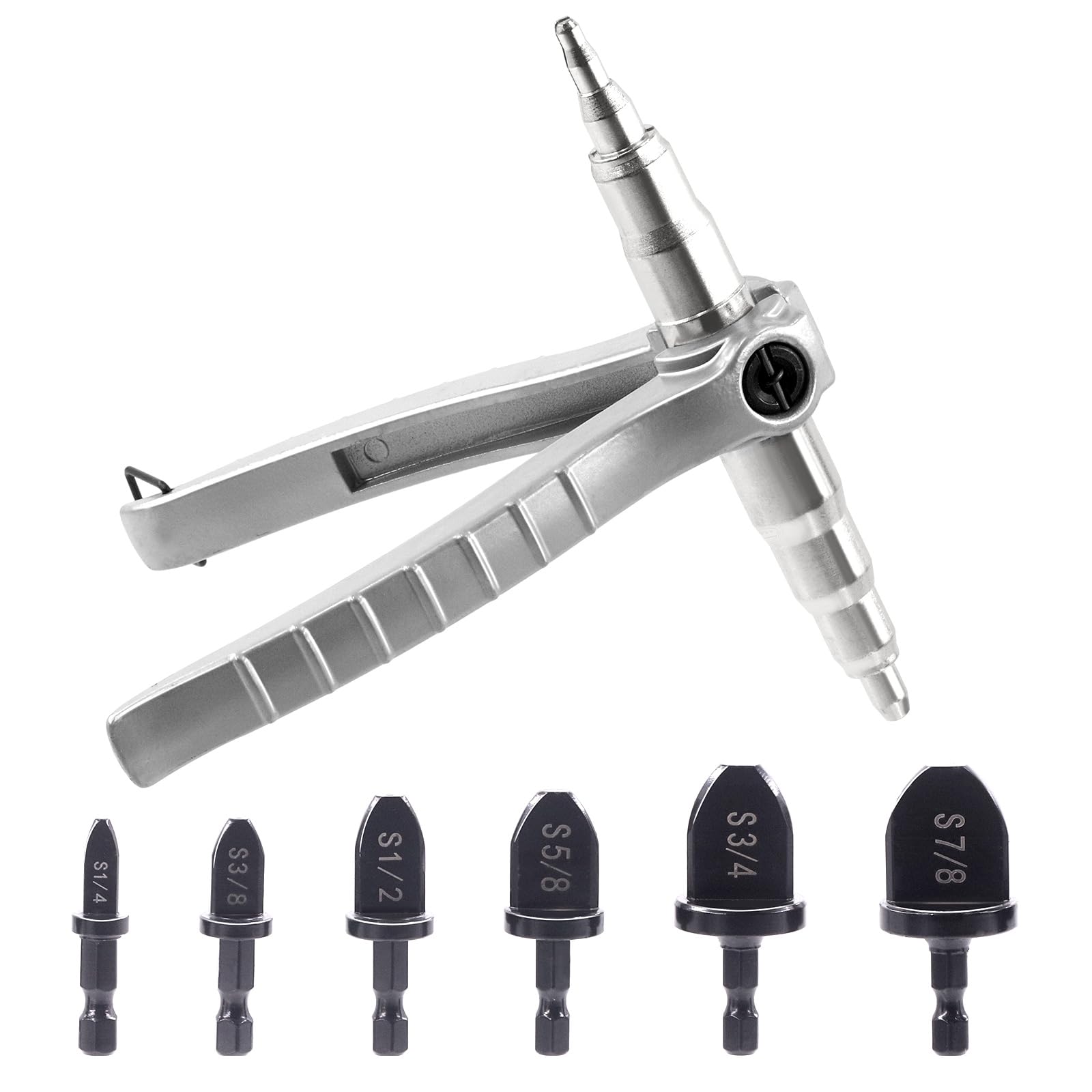 Swpeet 7Pcs Copper Pipe Tube Expander Tool with 1/4'' 3/8'' 1/2'' 5/8'' 3/4'' 7/8'' Expander Drill Bit Assortment Kit, Hand Expanding Tool Refrigeration Tools Copper Pipe Swaging Tool Tube Expander