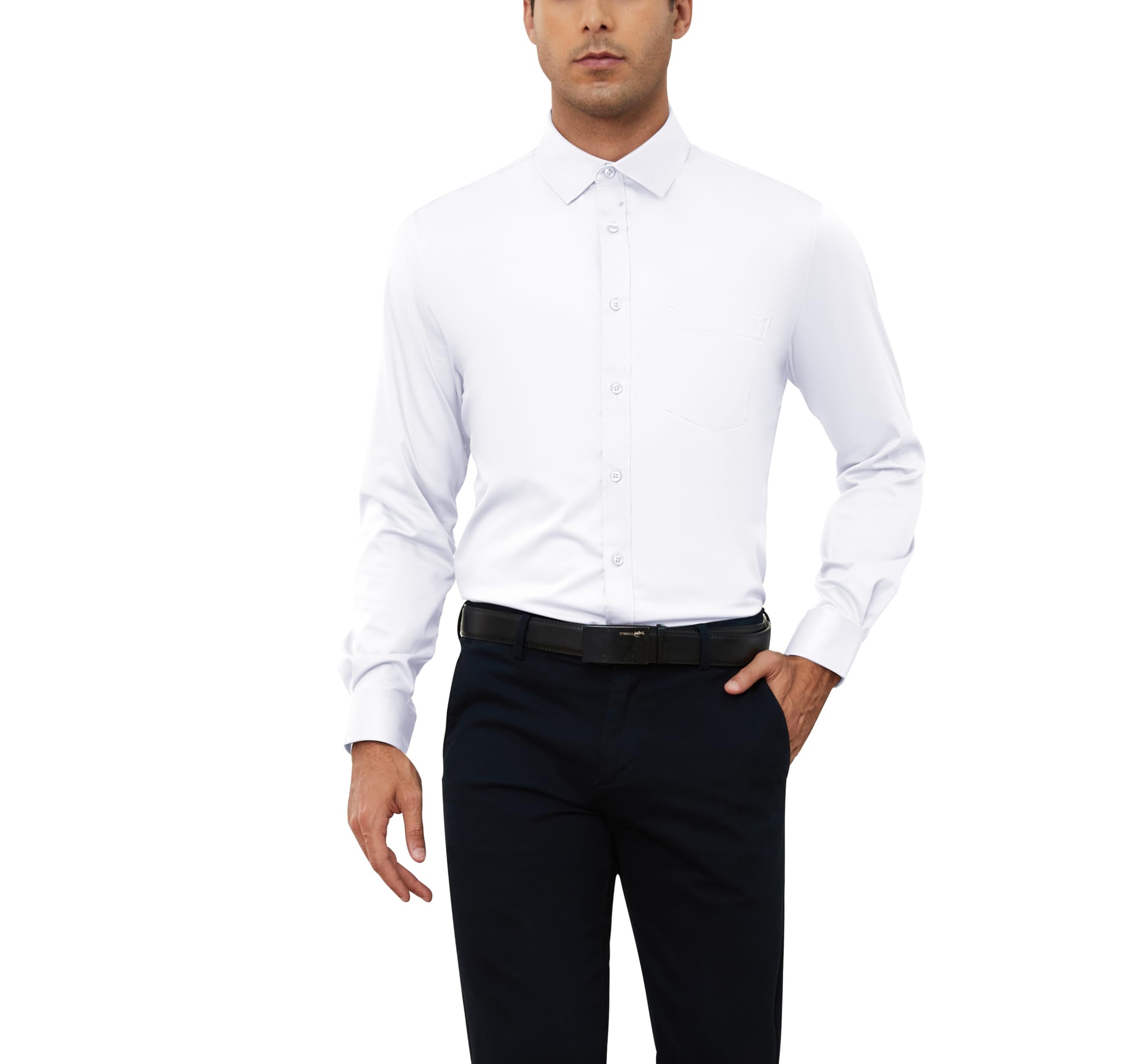Syewan Men's Dress Shirts for Men Long Sleeve Stretch Wrinkle Free Formal Mens Button Down Shirt Business Casual Dress Shirts White