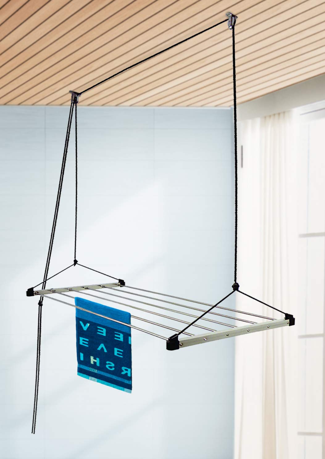 Synergy - 6 Pipes x 4 Feet - Heavy Duty Stainless Steel Ceiling Clothes Hanger/Cloth Dryer for Balcony with UV Protected Rope (SY-CE1)