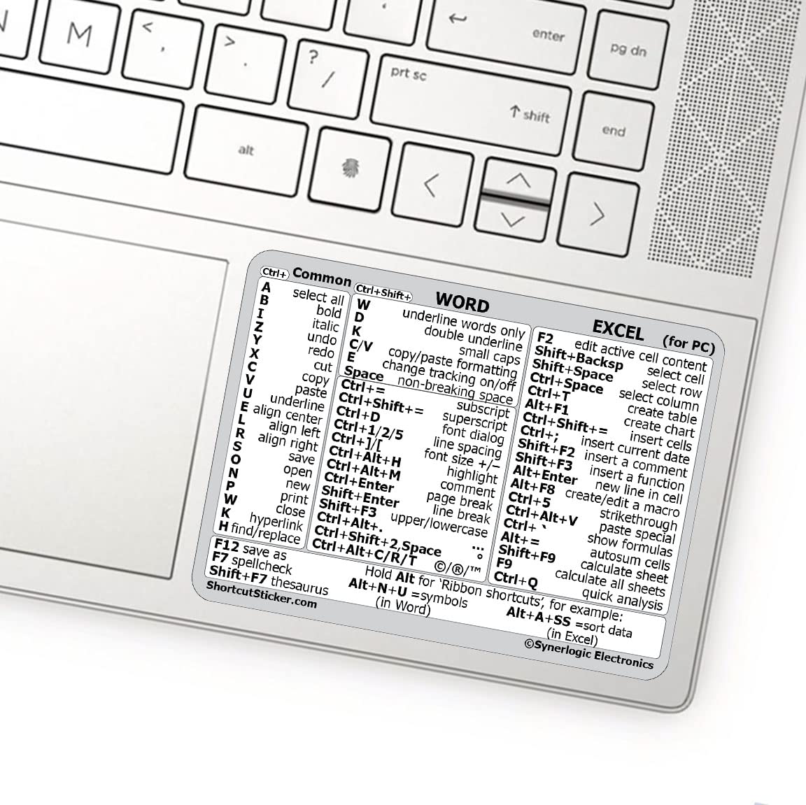 Your Synerlogic Essential Shortcuts Sticker is an accurate, comprehensive list of keyboard shortcuts that you need. It contains a list of shortcuts for any PC and fits easily on the bottom corner of your laptop so you can quickly look down and read it. It is perfect for the beginner who wants to learn how to use their Word and Excel and save time by having important keyboard shortcuts at their fingertips. Designed by SYNERLOGIC, the sticker is made of military-grade waterproof vinyl and is more durable and convenient than a printout of the shortcuts.